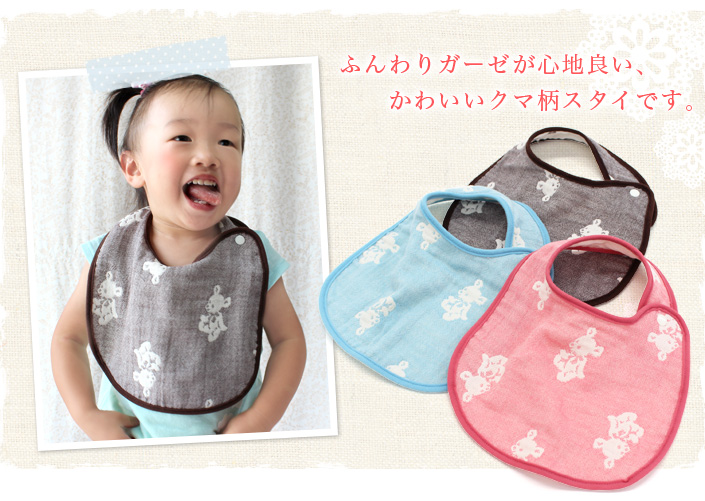 ベビースタイ 4重ガーゼ ベビー 日本製 クマ柄 ブルー