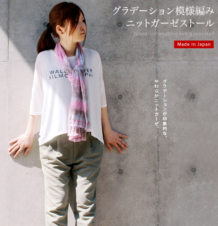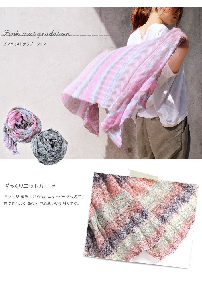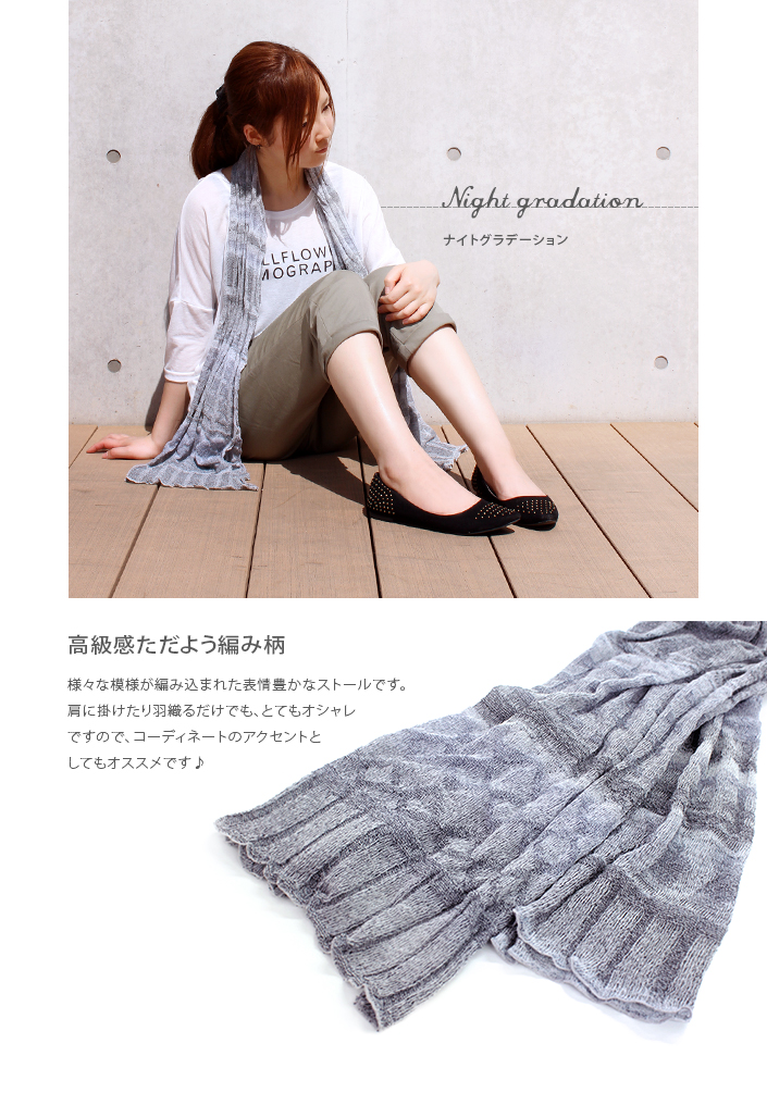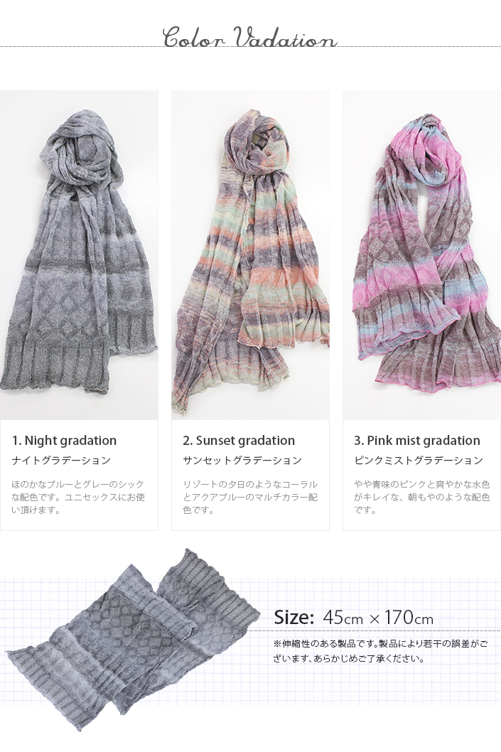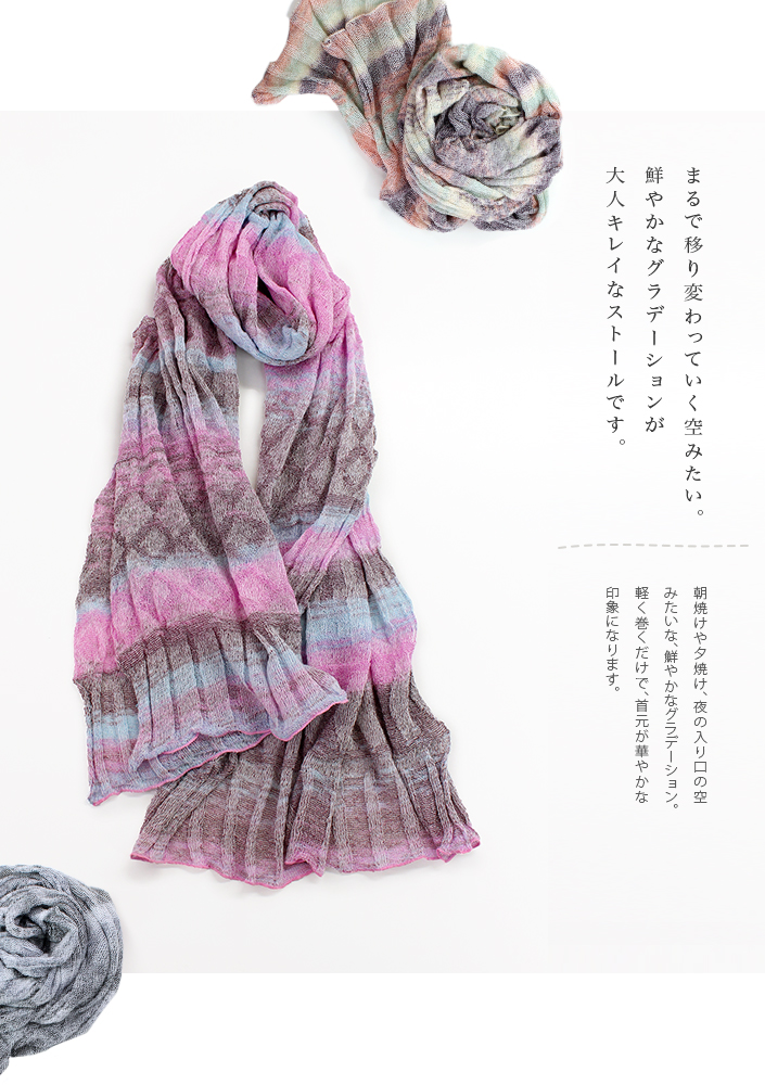 ニットガーゼストール グラデーション 模様編み 日本製 サンセットグラデーション