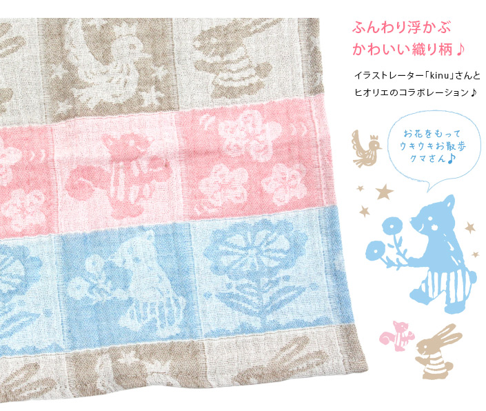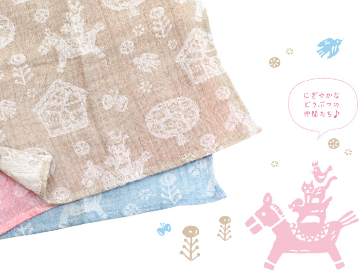 ■カラー:クマ同柄3枚、ネコ同柄3枚、ハリネズミ同柄3枚、うま各色1枚、クマ+ネコ+うまベージュ各1枚、クマ+ネコ+うまピンク各1枚、クマ+ネコ+うまサックス各1枚、クマ+ネコ+ハリネズミ各1枚