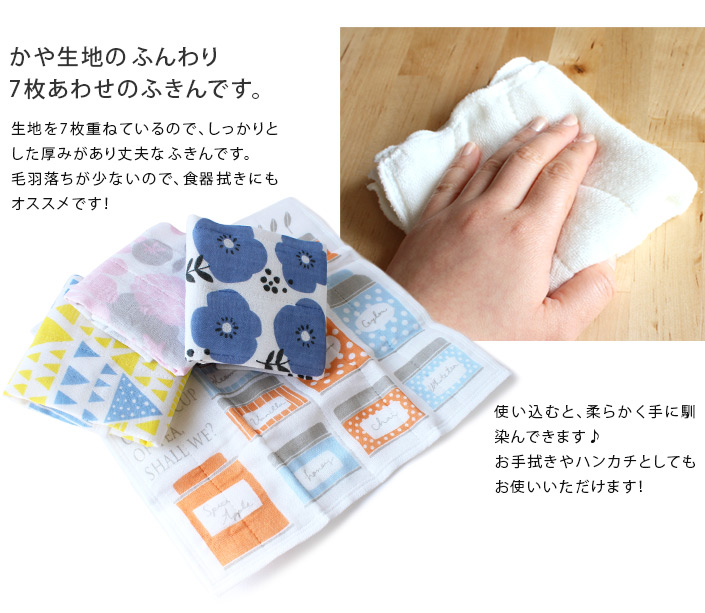 ふきん 7枚あわせ かや生地 1枚 日本製 ベジタブルピンク