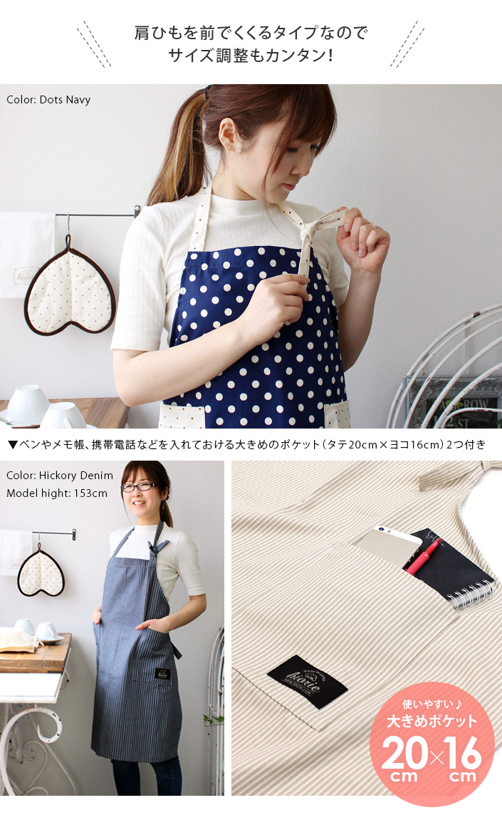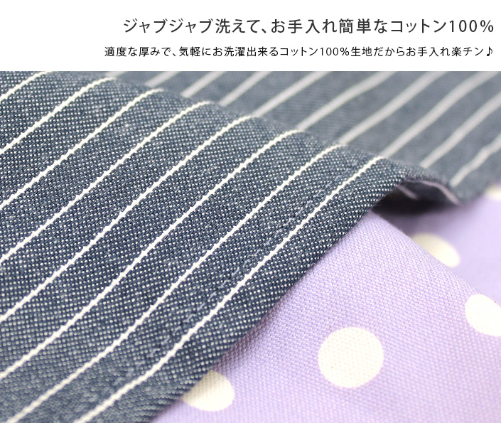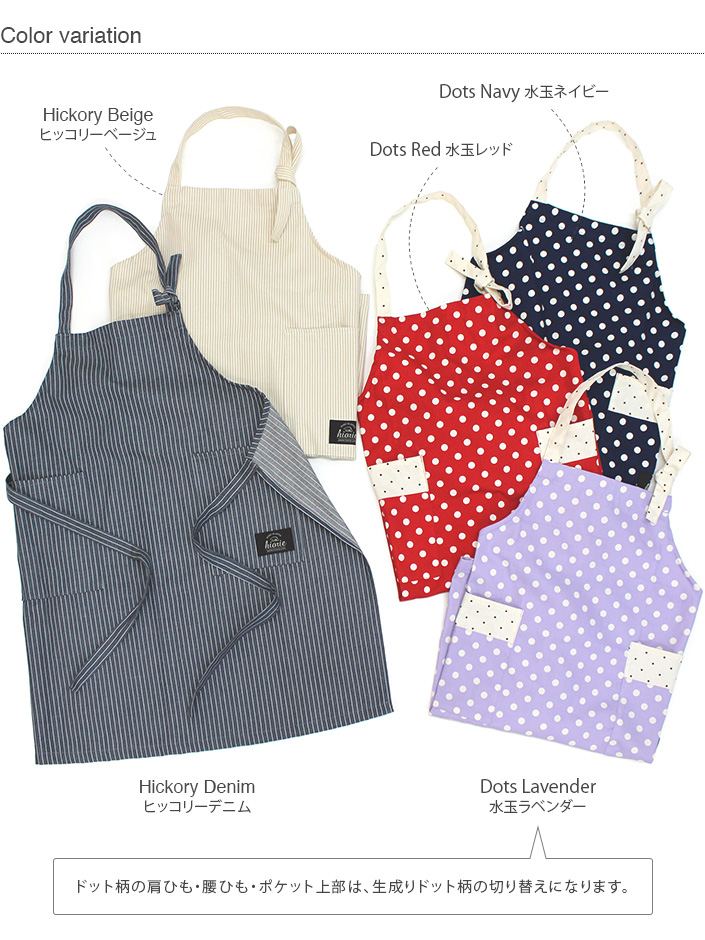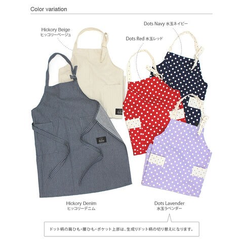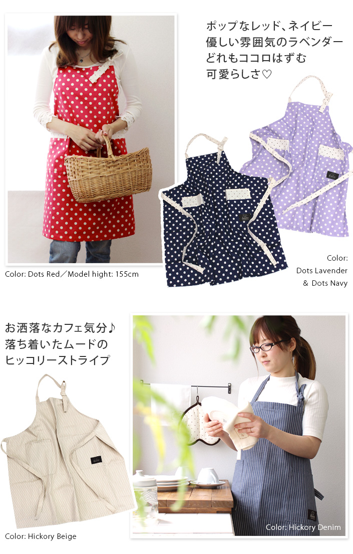 ■カラー:水玉レッド、水玉ラベンダー、水玉ネイビー、ヒッコリーデニム、 ヒッコリーベージュ