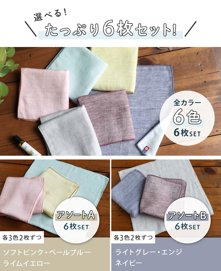 送料無料 今治タオル ふっくら ガーゼ ハンカチタオル 6枚セット アソートA