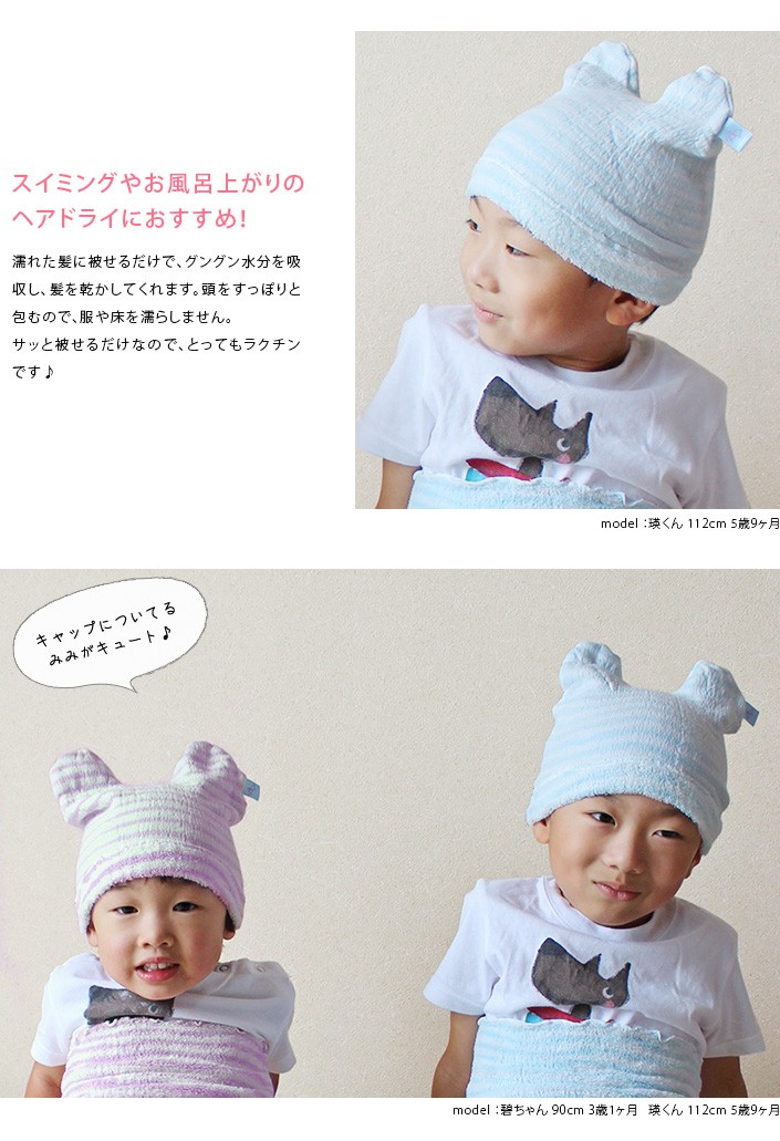 キッズ のびのび タオルキャップ 日本製 ラベンダー