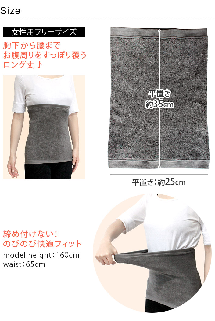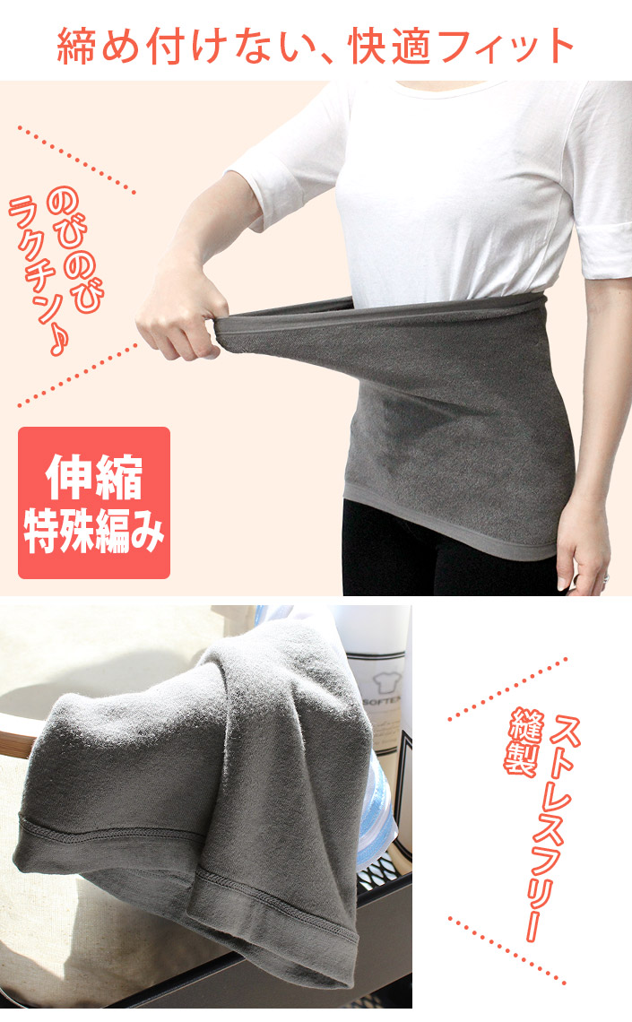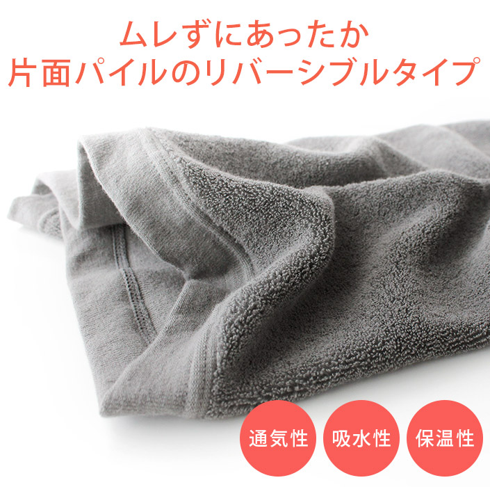ソフトな肌あたりのコットンパイルが空気の層をつくって、優しくお腹を温めます。