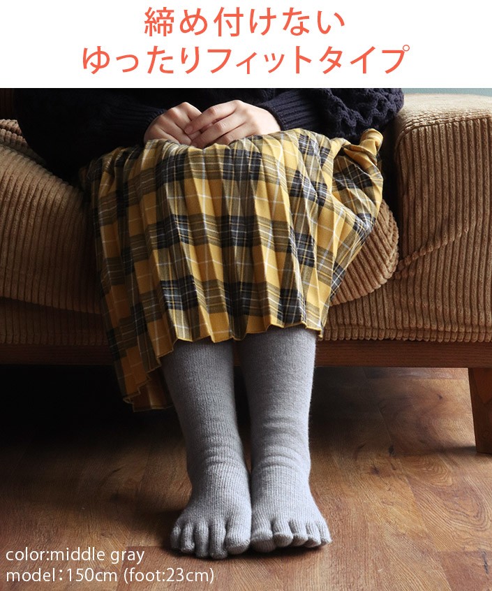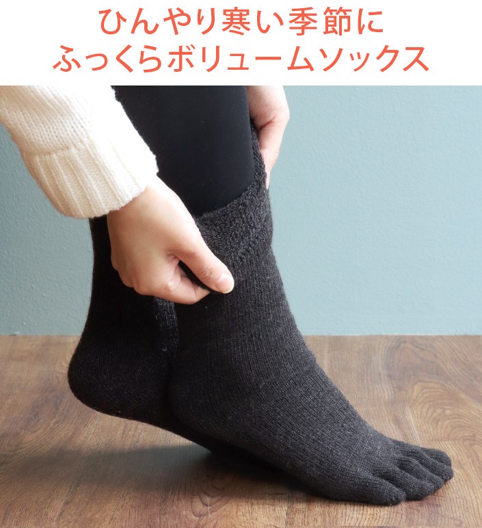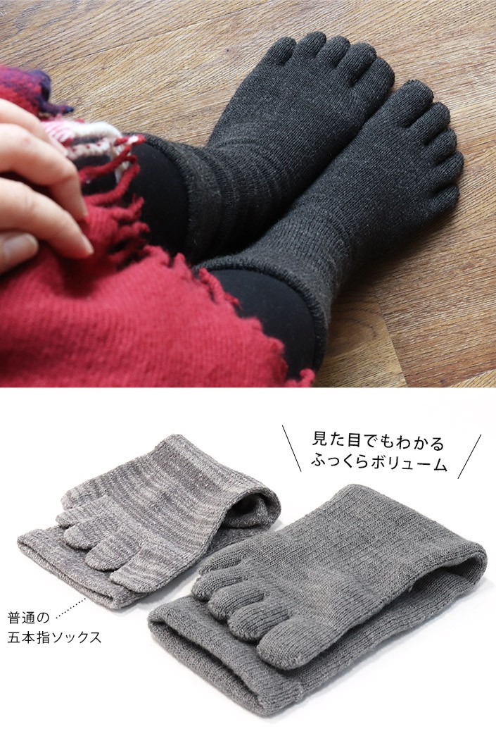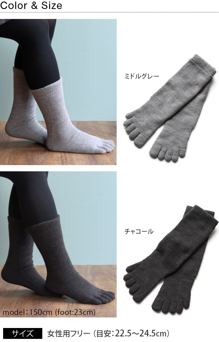 5本指靴下 厚手 靴下 内側パイル Mサイズ ミドル丈 日本製 ミドルグレー