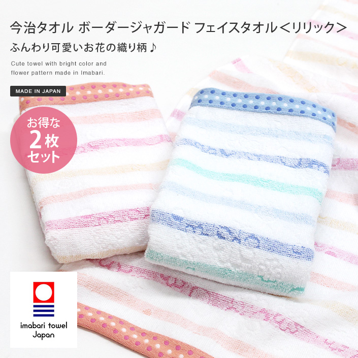 今治タオル ボーダージャガード リリック フェイスタオル 2枚セット ブルー