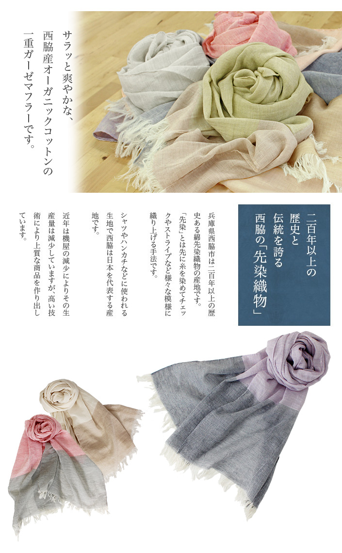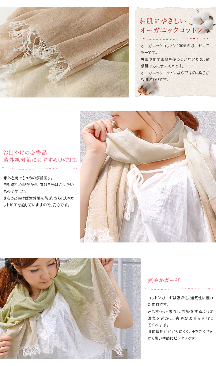 ガーゼマフラー UVカット オーガニックコットン 1重 日本製 杢オレンジ