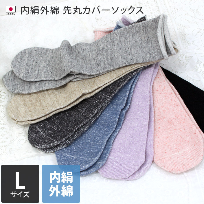 冷え取り 先丸靴下 シルク 内絹外綿 カバー 靴下 Lサイズ ミドル丈 日本製 杢ベージュ