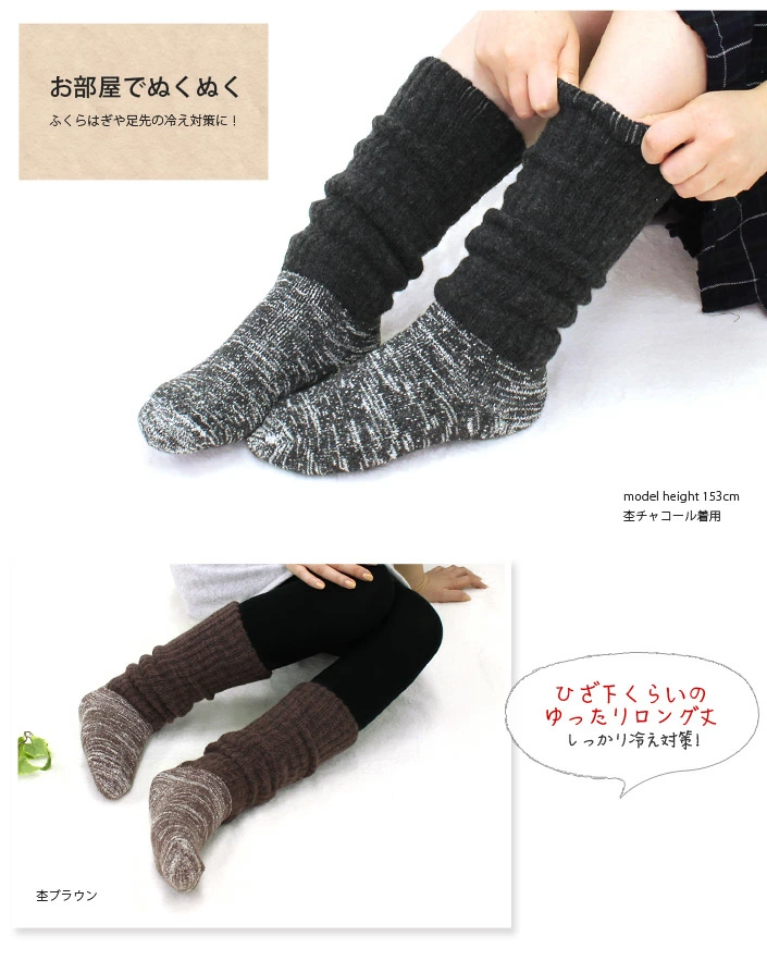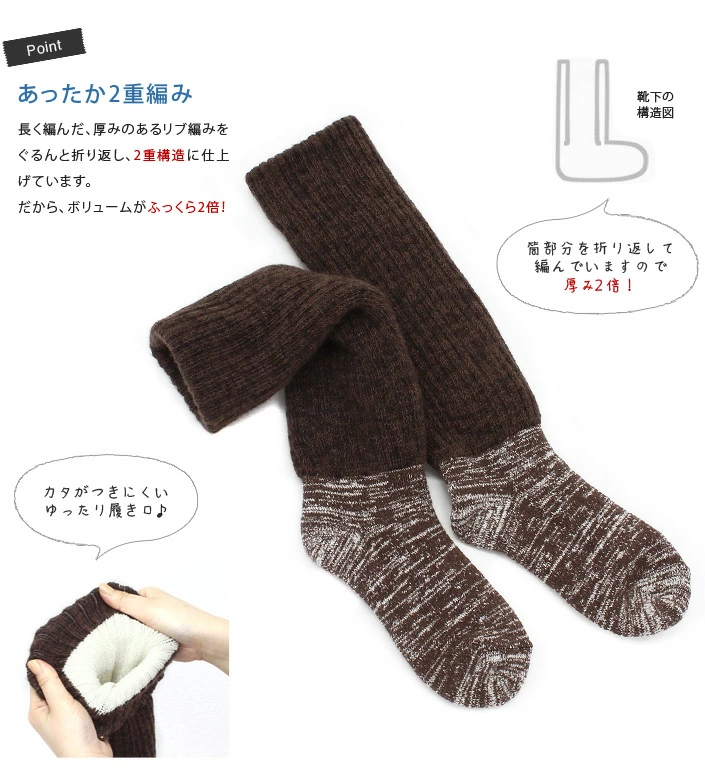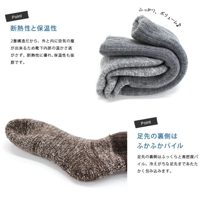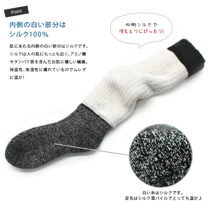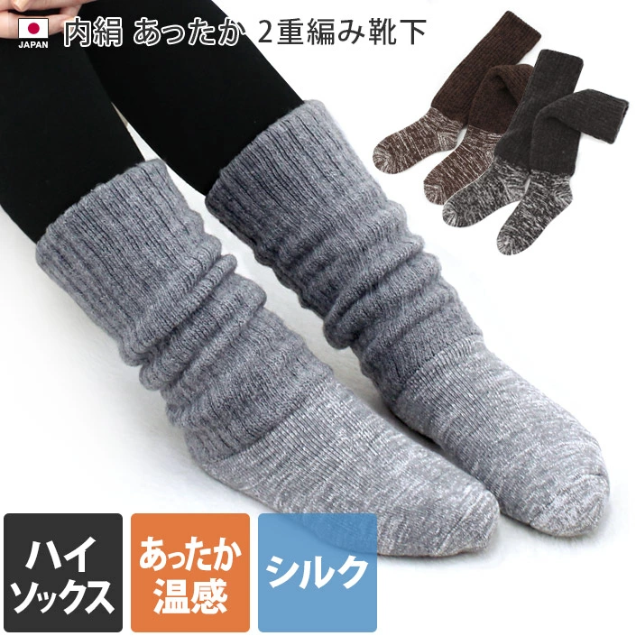送料無料 靴下 内絹 あったか2重編み靴下 日本製【圧縮】杢チャコール