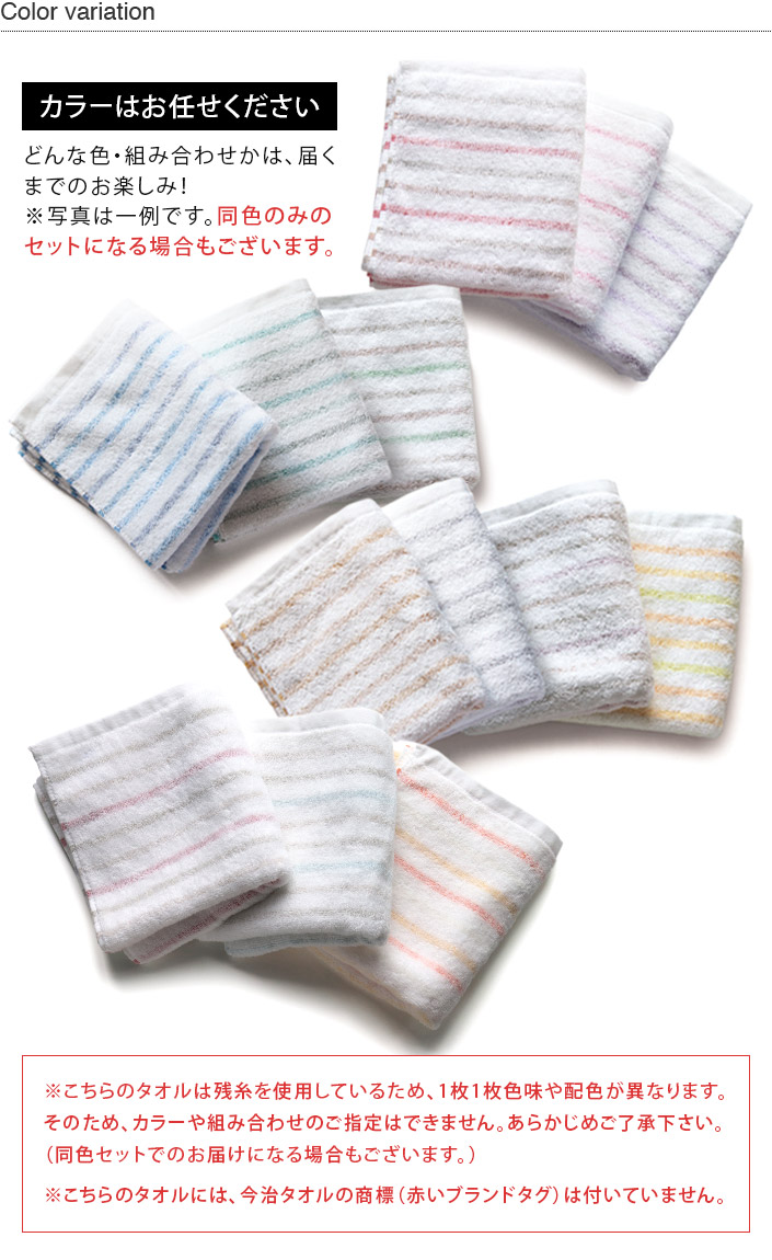 今治タオルの商標(赤いブランドタグ)はついていません。