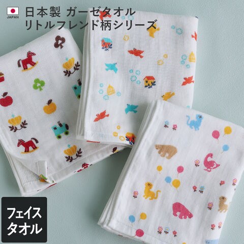 タオル ガーゼタオル フェイスタオル リトルフレンド柄 日本製 1枚 お散歩