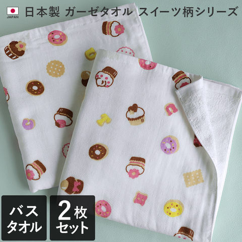 タオル ガーゼタオル バスタオル スイーツ柄 日本製 同色2枚セット