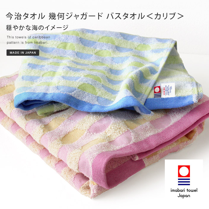 今治タオル 幾何ジャガード カリブ バスタオル 1枚 ブルー