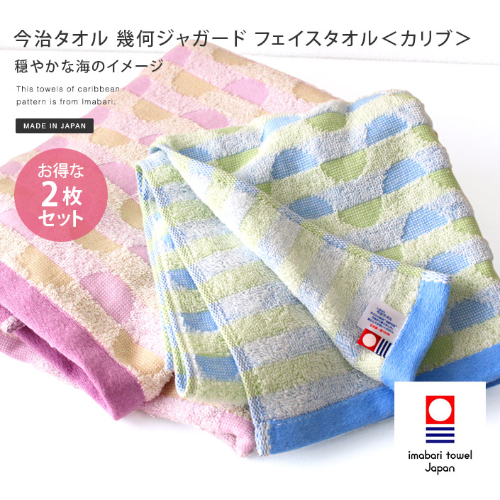 今治タオル 幾何ジャガード カリブ フェイスタオル 2枚セット ブルー