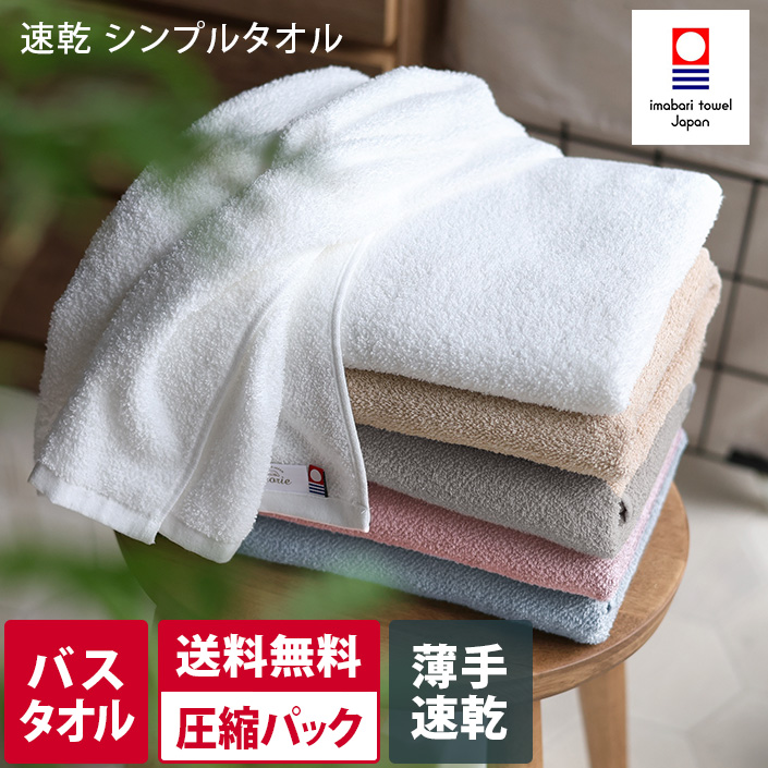 送料無料 今治タオル 速乾シンプルタオル バスタオル 1枚 薄手 日本製【圧縮】オフホワイト