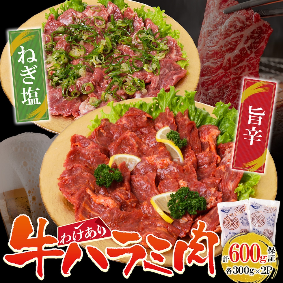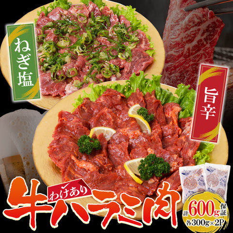 ■訳あり 牛ハラミ肉セット(旨辛、ねぎ塩)各1P 計600g