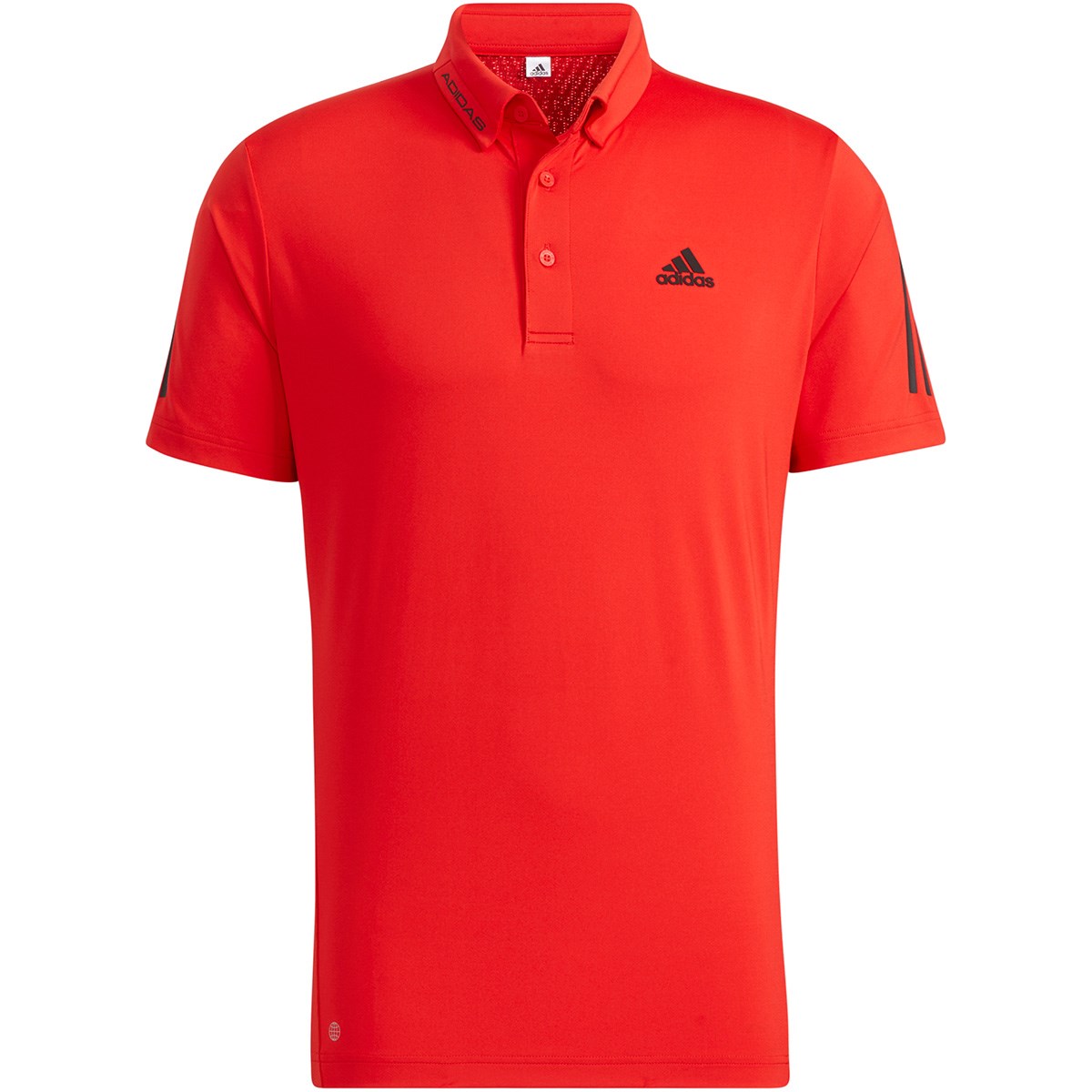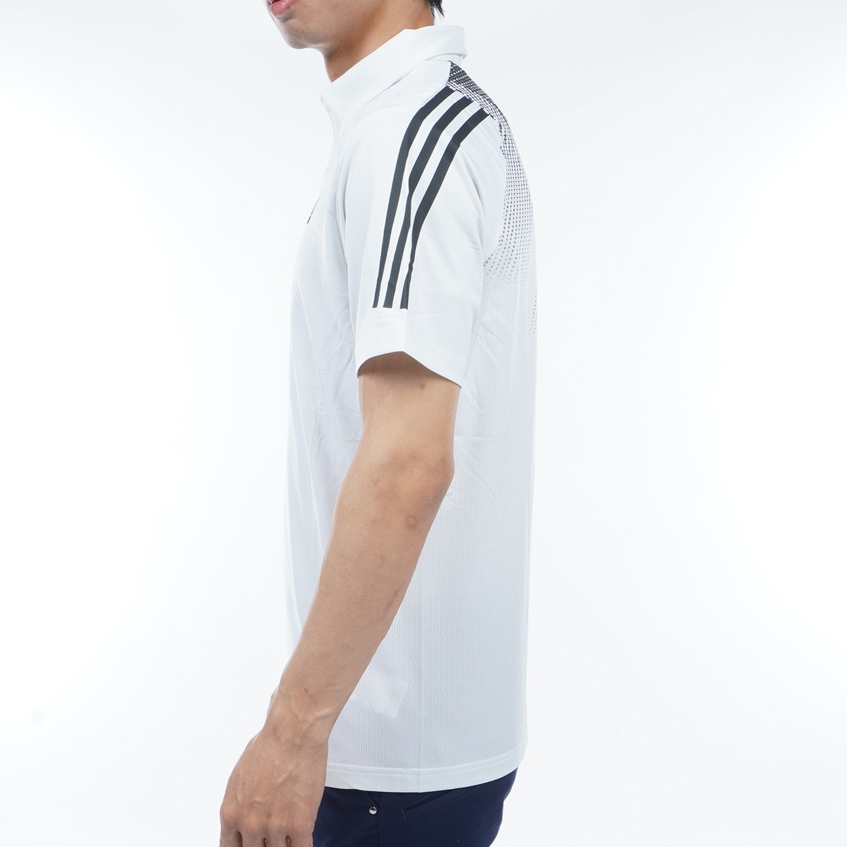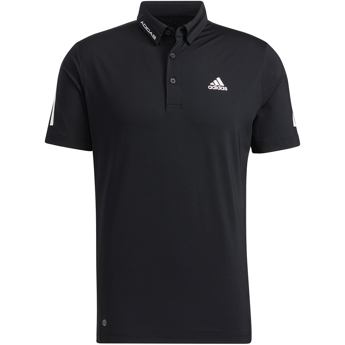 両袖の肩から袖先にかけてのスリーストライプスが特徴の半袖ポロシャツ。