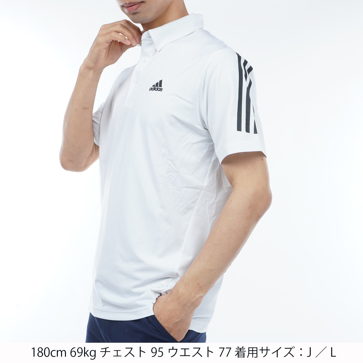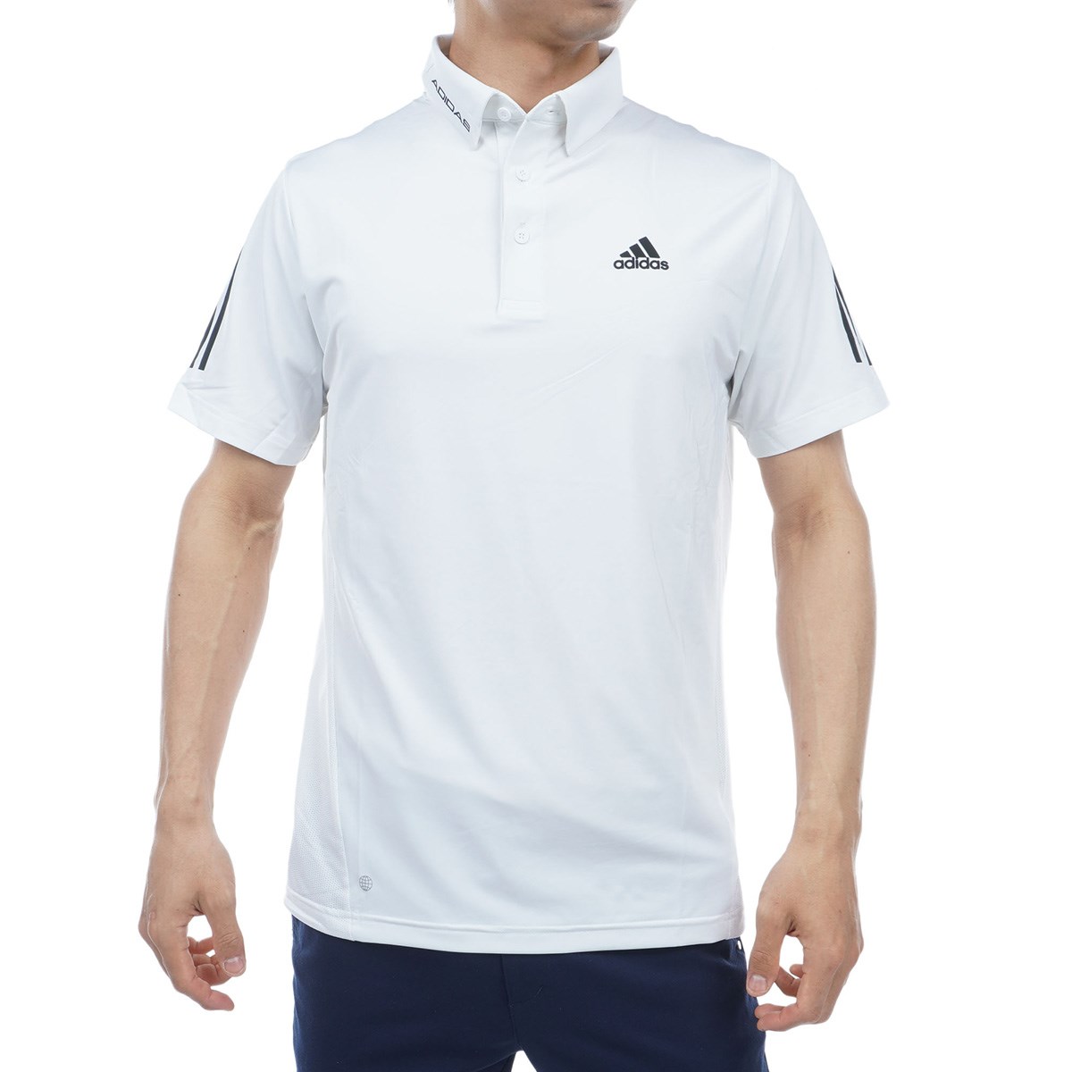 アディダス Adidas スリーストライプス ストレッチ半袖ボタンダウンポロシャツ J/L ホワイト