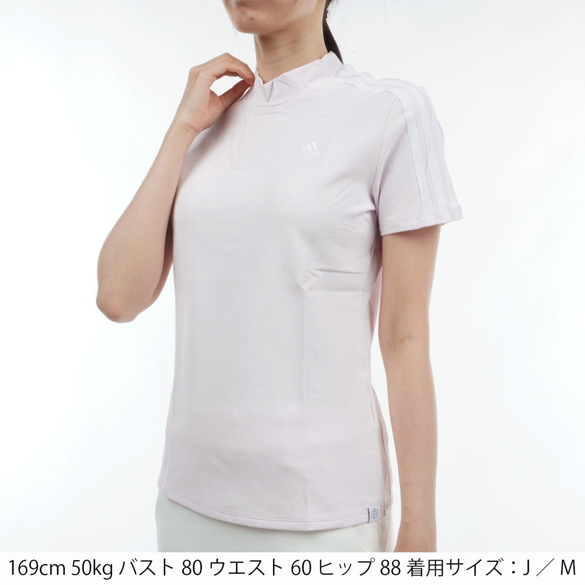 アディダス Adidas スリーストライプス ストレッチ 半袖モックネックシャツ J/M オールモストピンク レディス