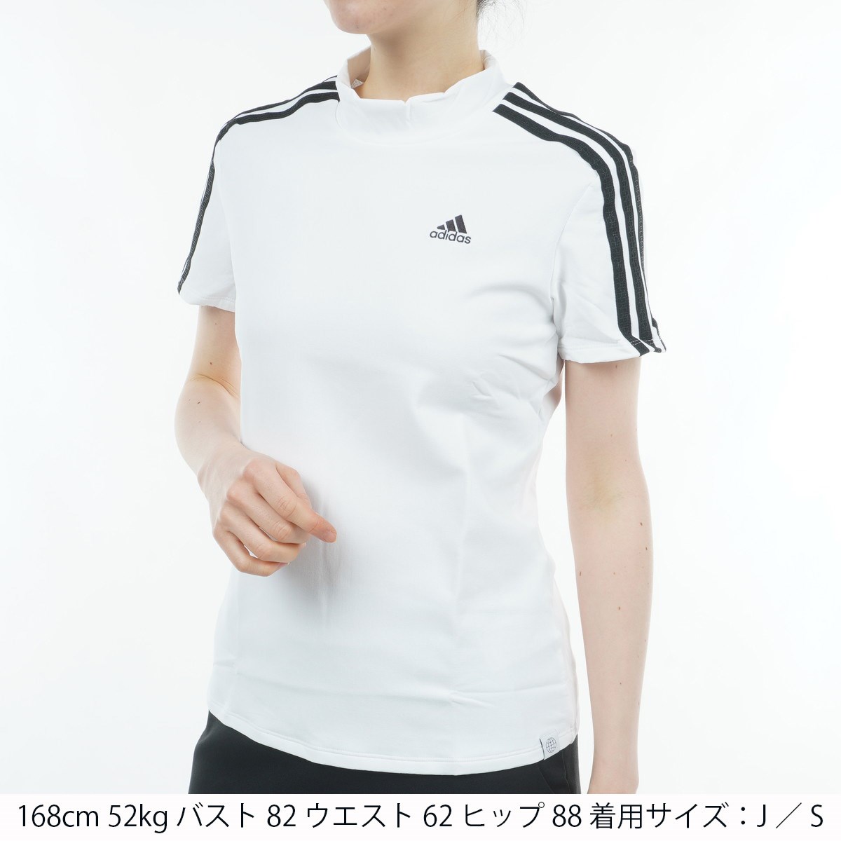 アディダス Adidas スリーストライプス ストレッチ 半袖モックネックシャツ J/XOT ホワイト レディス