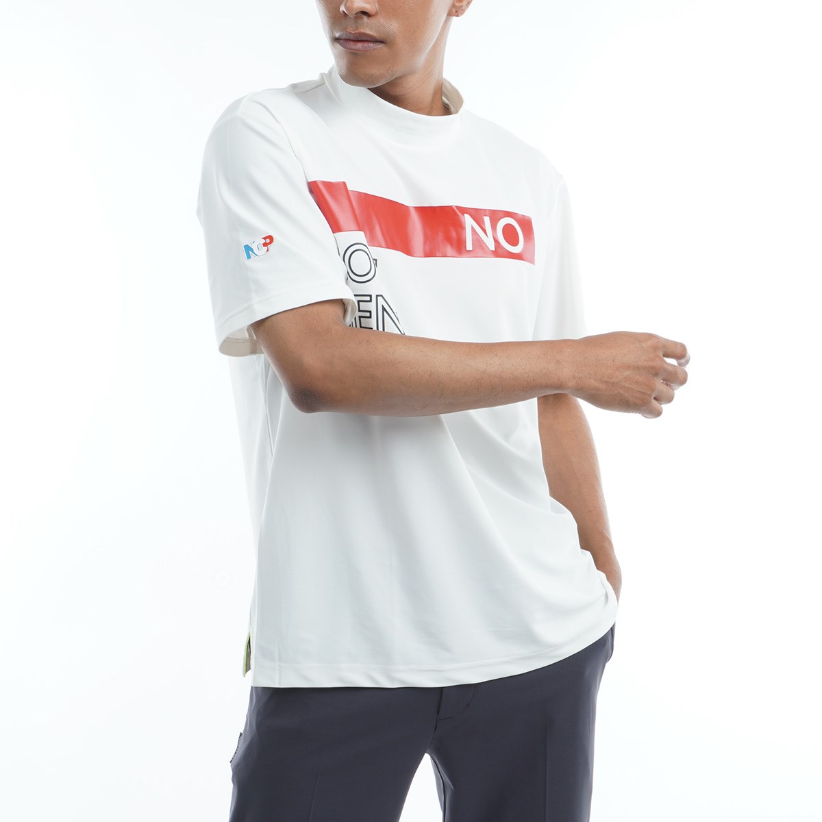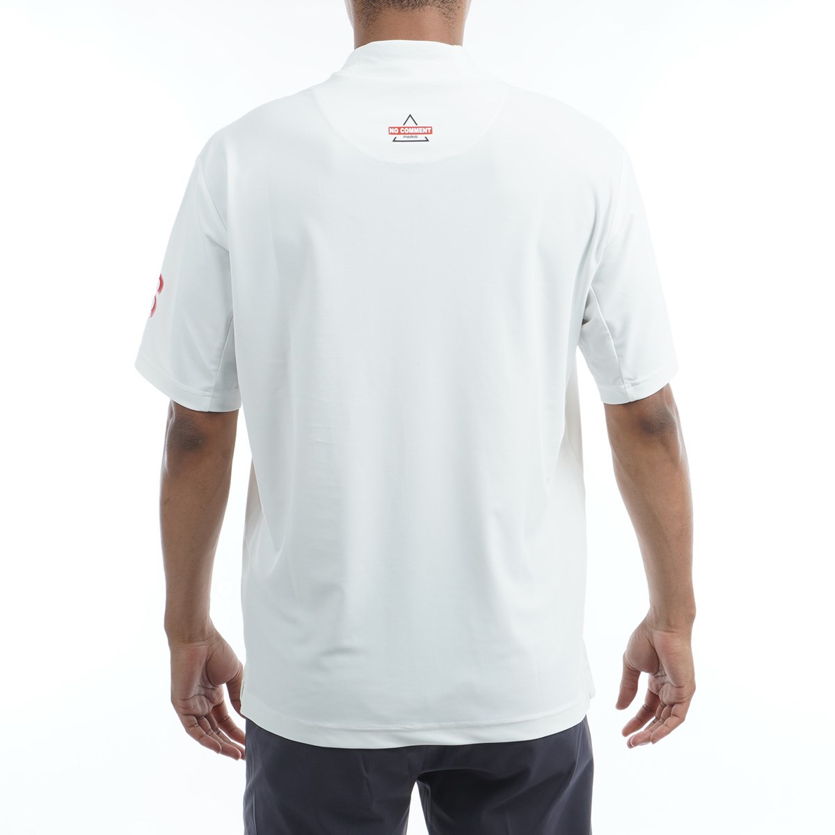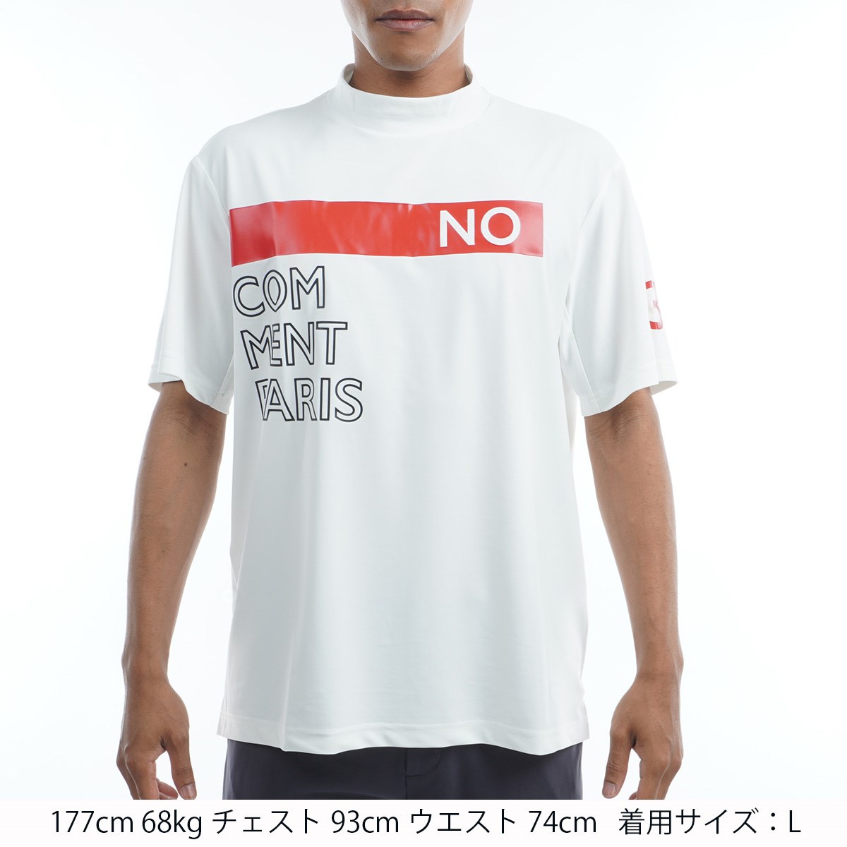 ノーコメントパリ NO COMMENT PARIS ロゴプリント ストレッチ モックネック半袖Tシャツ M オフホワイト