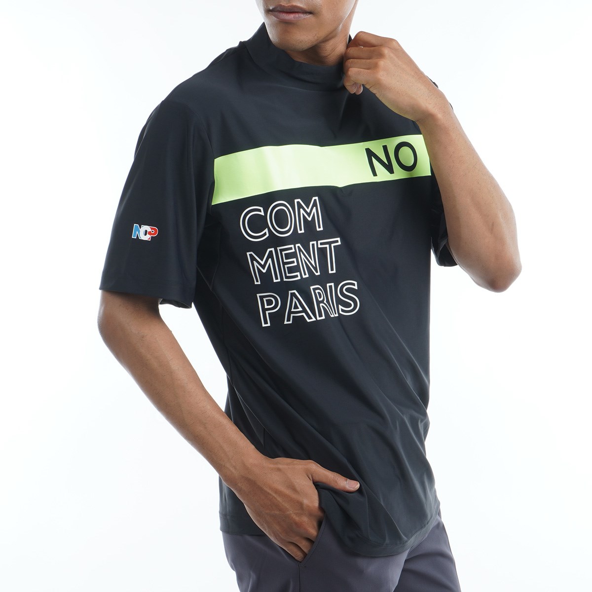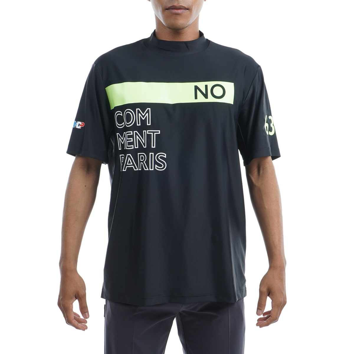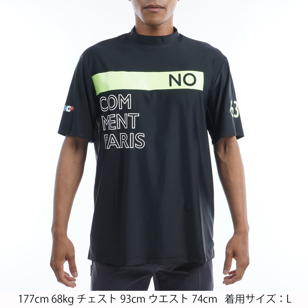 ノーコメントパリ NO COMMENT PARIS ロゴプリント ストレッチ モックネック半袖Tシャツ XL ブラック