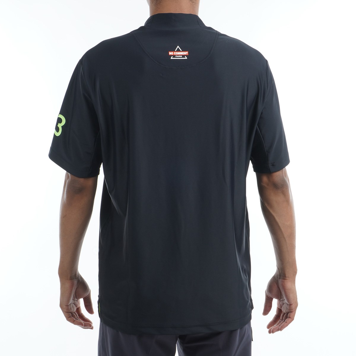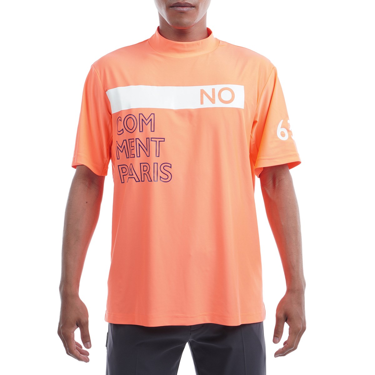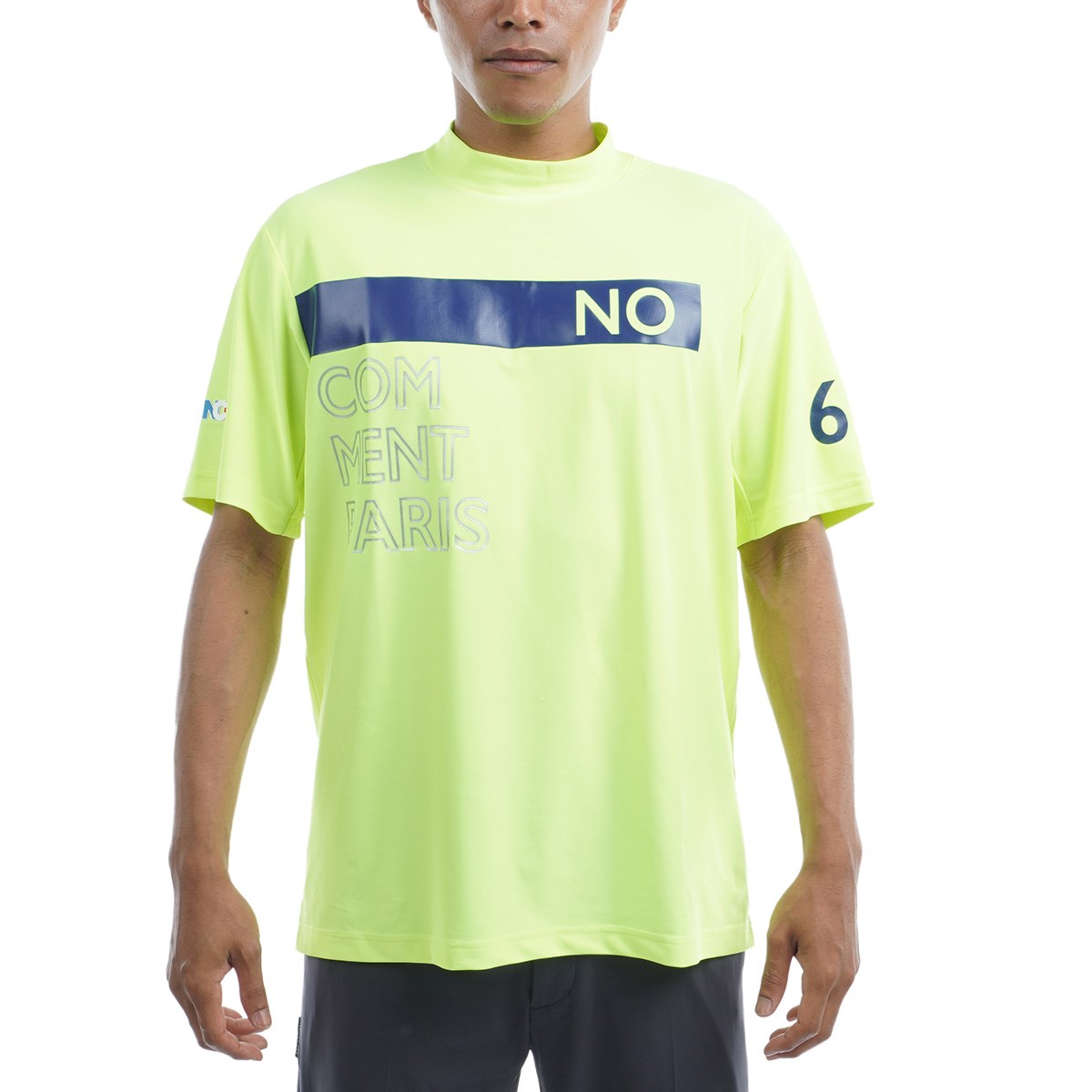 ノーコメントパリ NO COMMENT PARIS ロゴプリント ストレッチ モックネック半袖Tシャツ XL ブラック