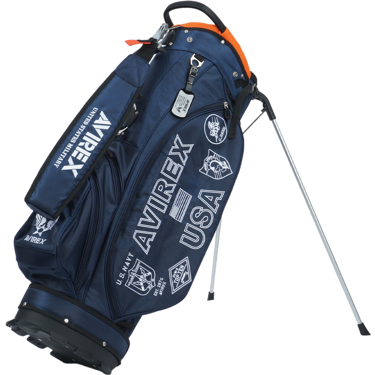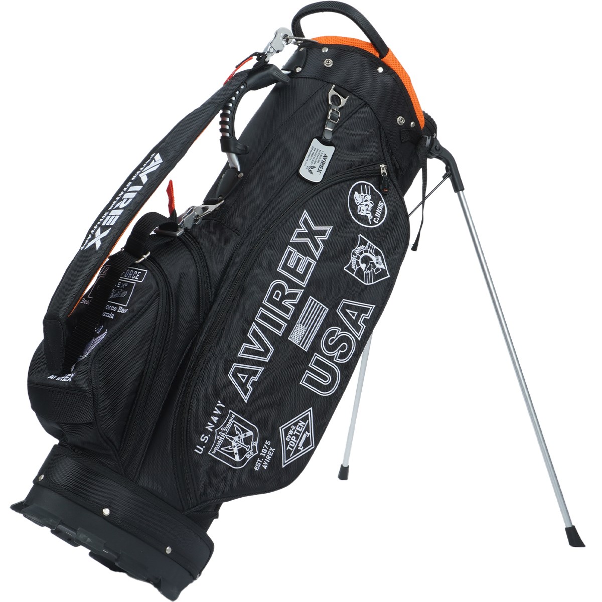 アビレックスブランドの定番ロゴやモチーフを配したスタンドキャディバッグです。
