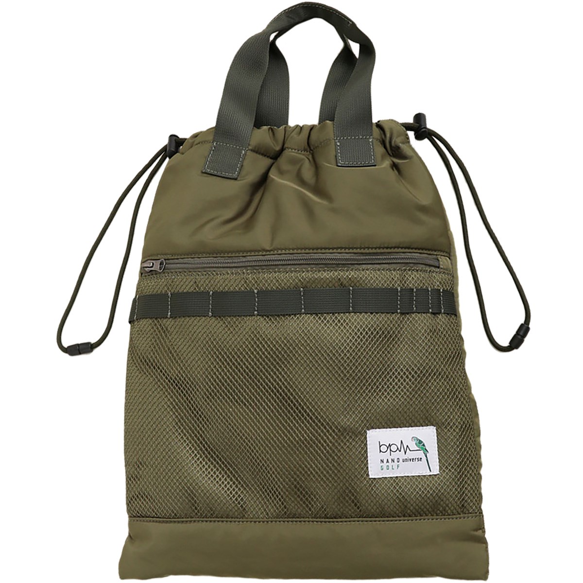 持ち手のついた巾着タイプで、フロント部分にはゴルフピン収納が可能。