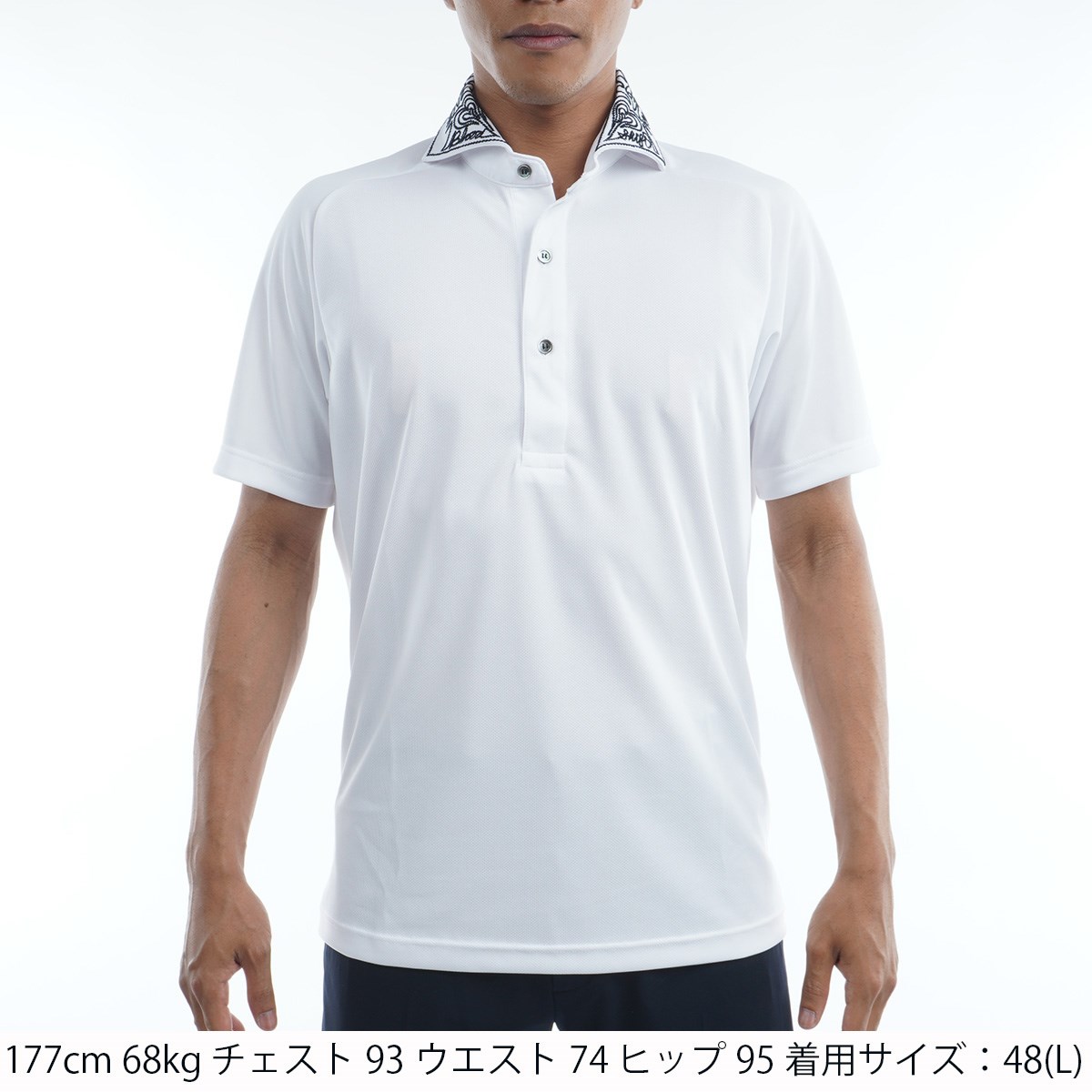 ブラッドシフト BLOOD SHIFT 一筆書き刺繍襟 ホリゾンタルカラー半袖ポロシャツ 50(XL) ホワイト 00