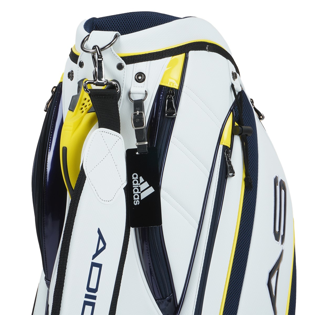 新しいモチーフのADIDASリニアロゴをサイドパネルに大きくデザインしたカートキャディバッグ。