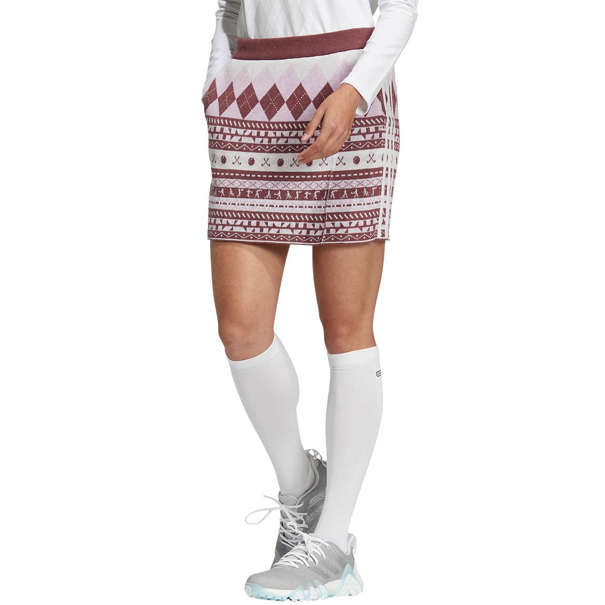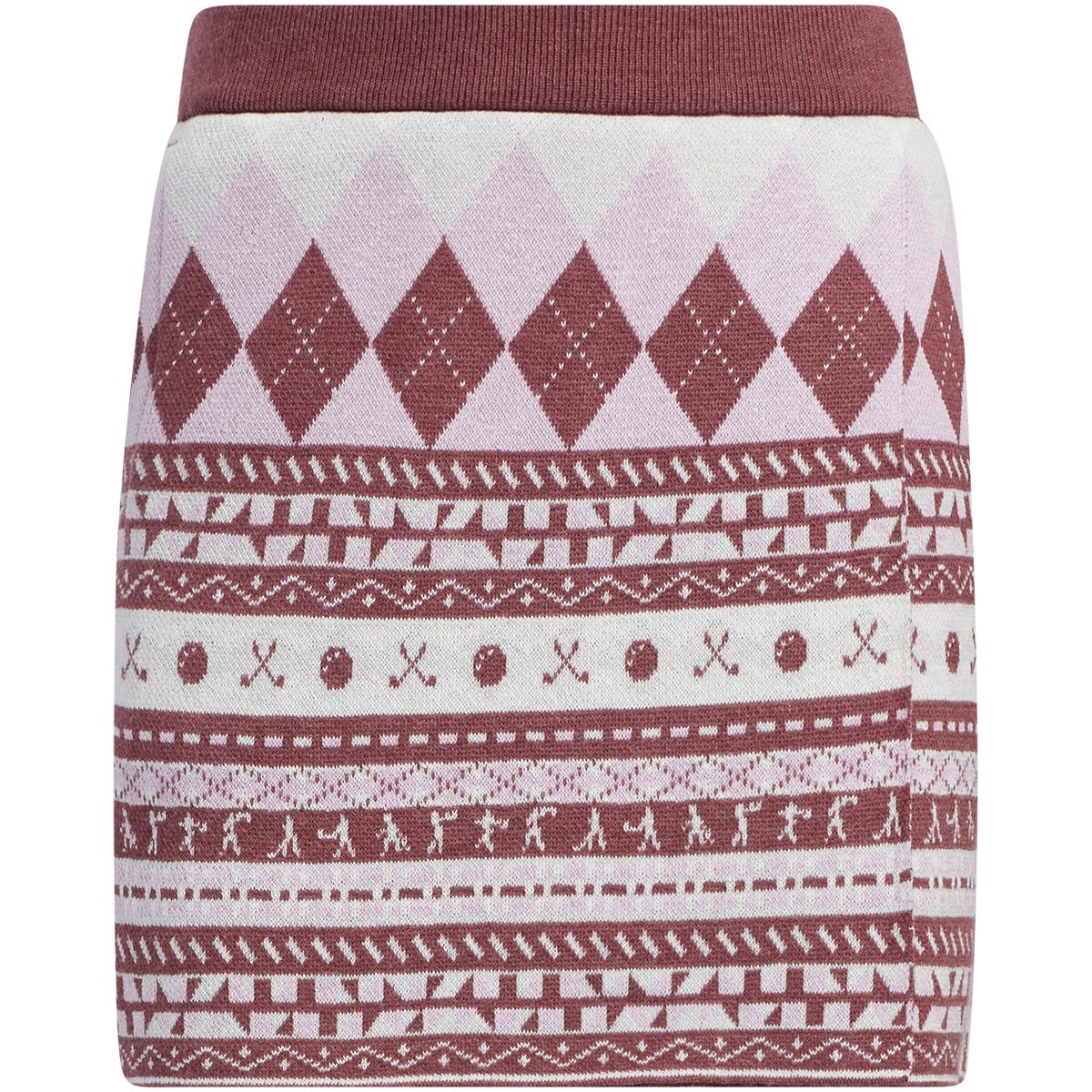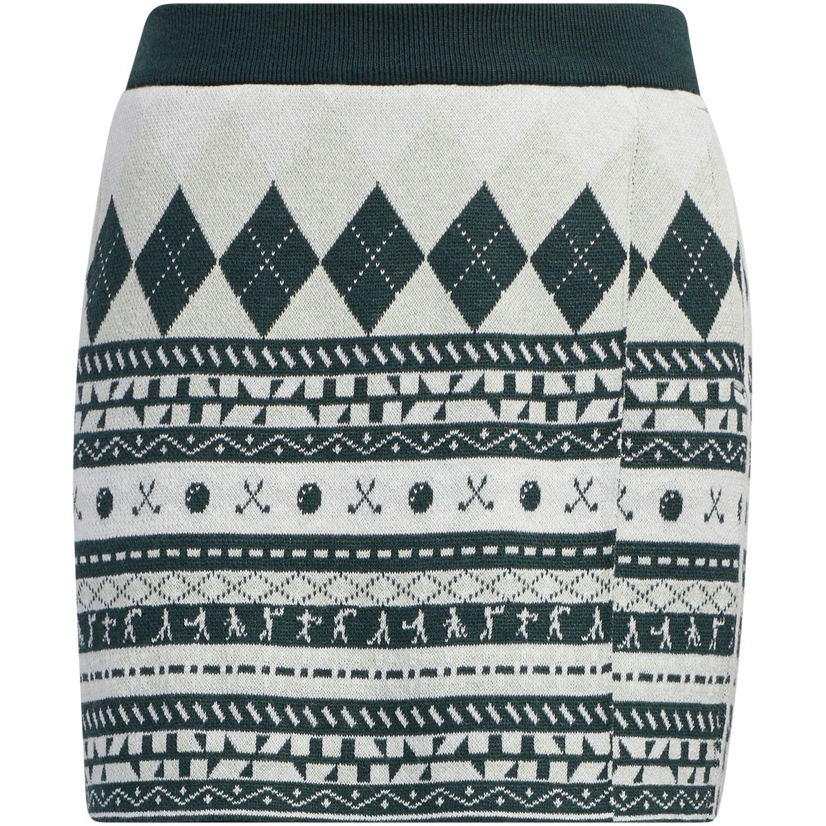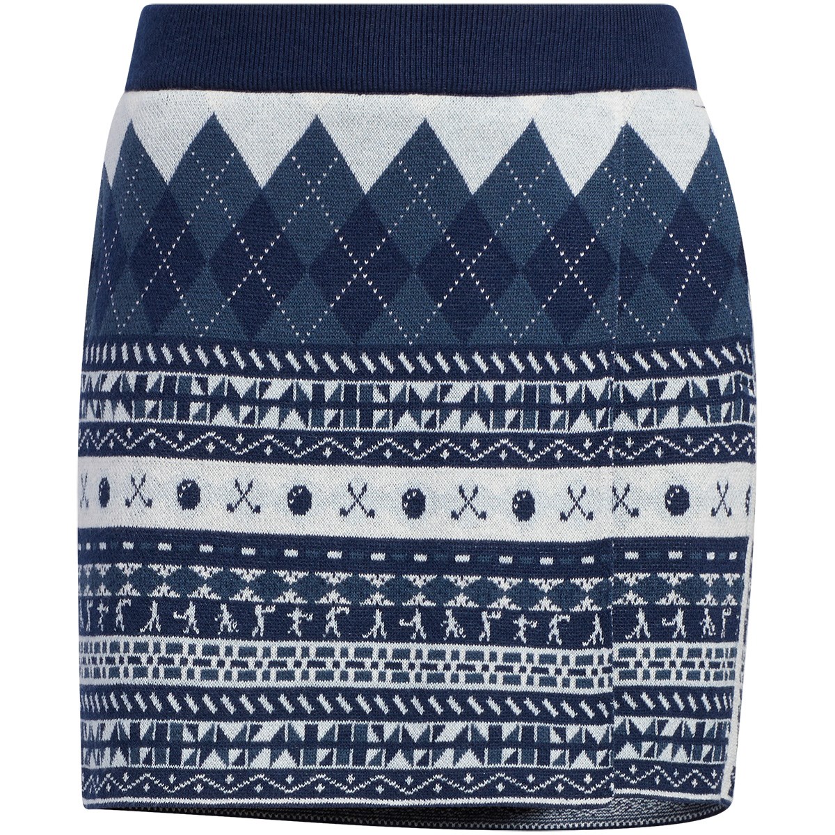 製品全体に伝統的な柄の一つでもあるフェアアイル柄とアーガイル柄にゴルフのエッセンスを加えた、非常にユニークな柄使いのニットスカートです。