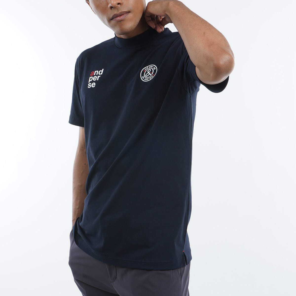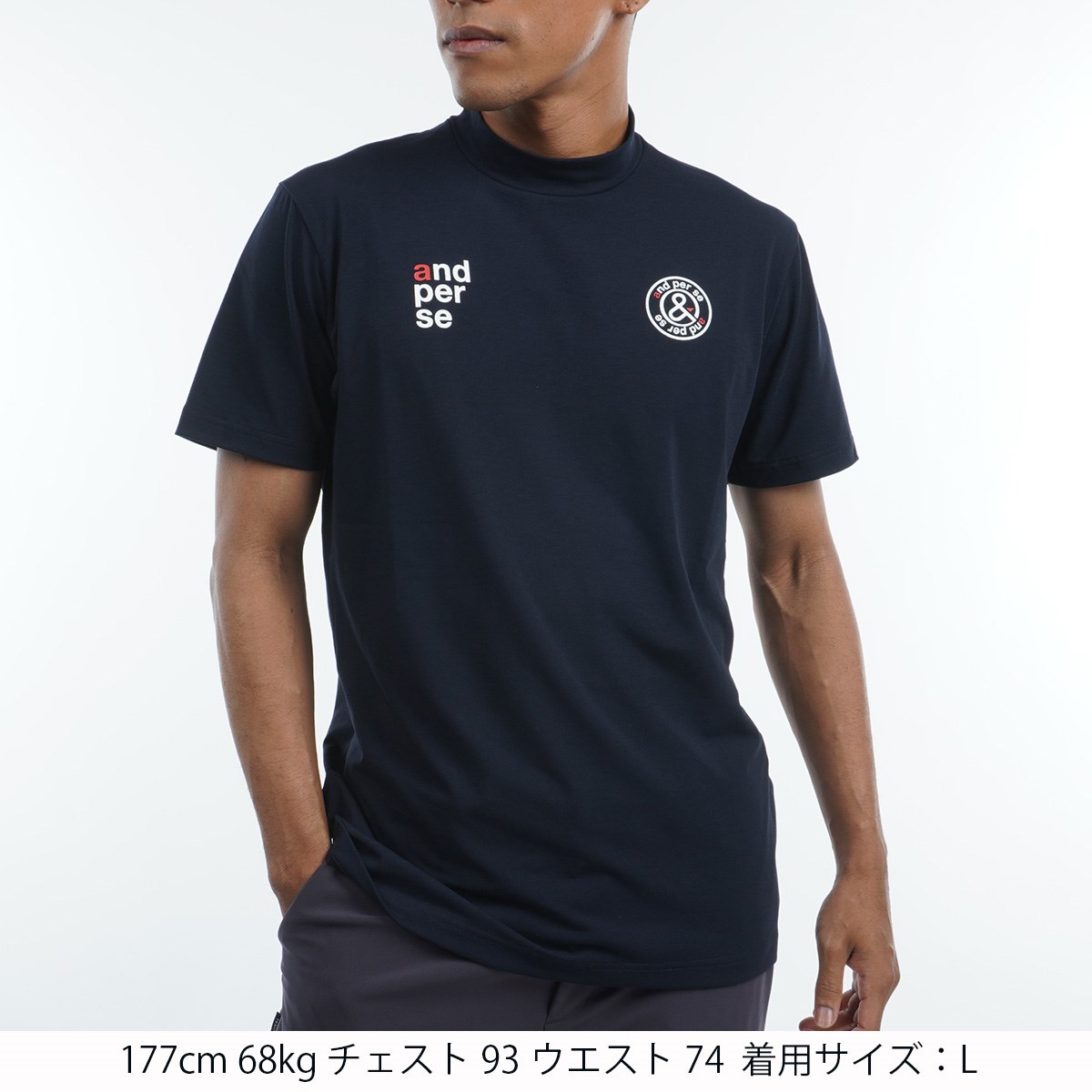 アンパスィ and per se ストレッチ 半袖モックネックシャツ L ネイビー