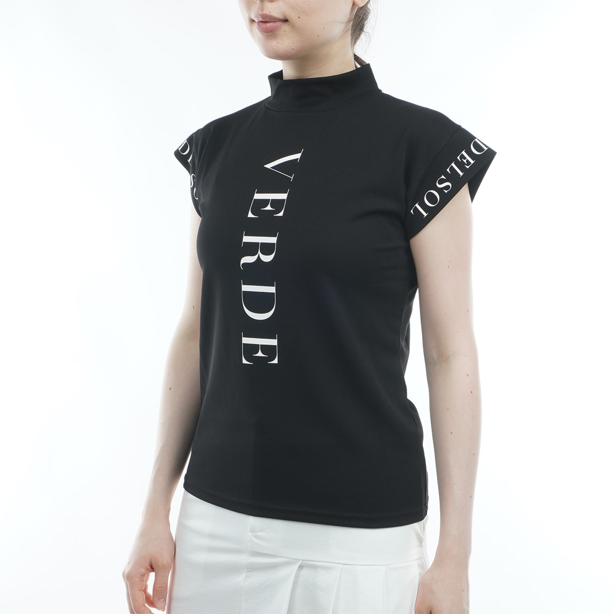 デルソルゴルフ DELSOL GOLF ストレッチ キャップスリーブ モックネック半袖シャツ LL ブラック レディス