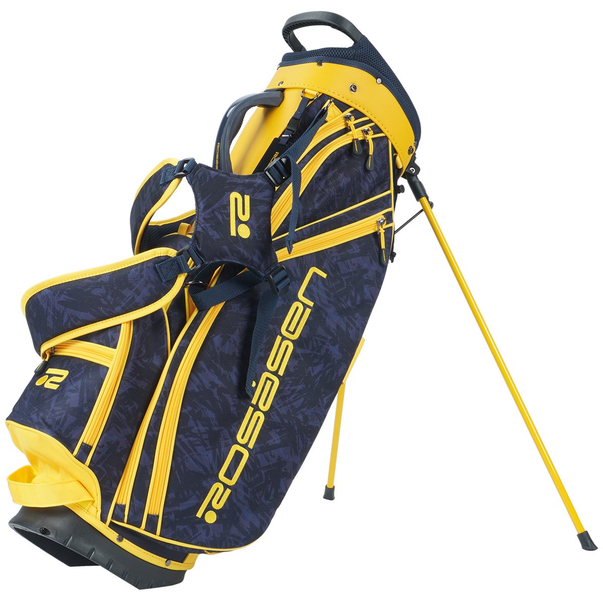 生地だけでなくハンドルやスライダー等パーツにもオリジナルにこだわったスタンドタイプで、ショルダーがリュック型のキャディバッグ。