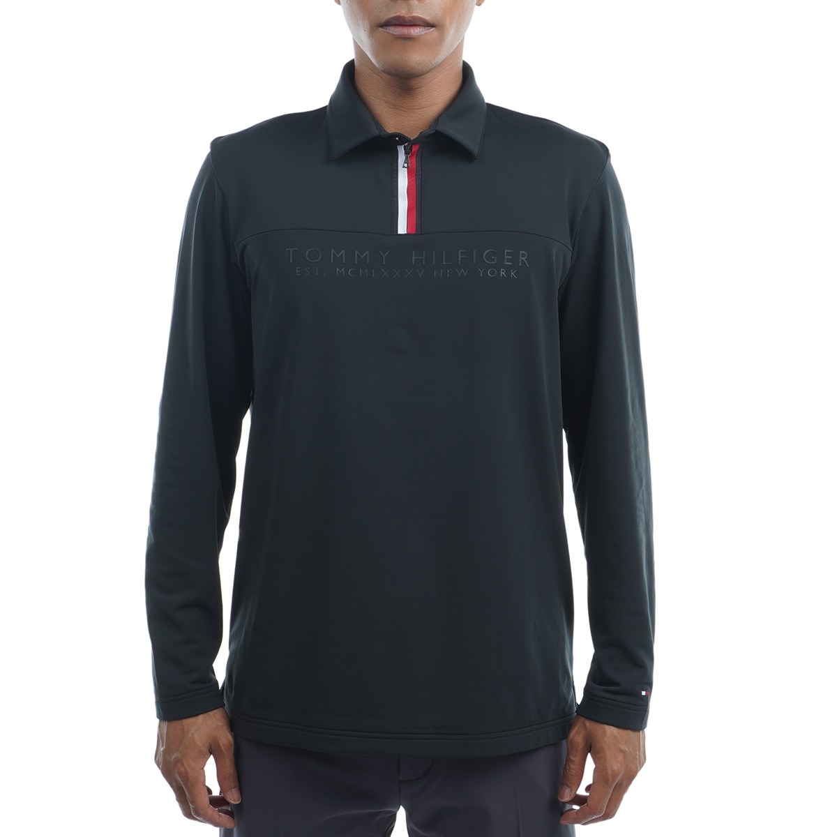 トミー ヒルフィガー ゴルフ TOMMY HILFIGER GOLF 裏起毛 フロントジップ ストレッチ 長袖ポロシャツ LL ネイビー 30