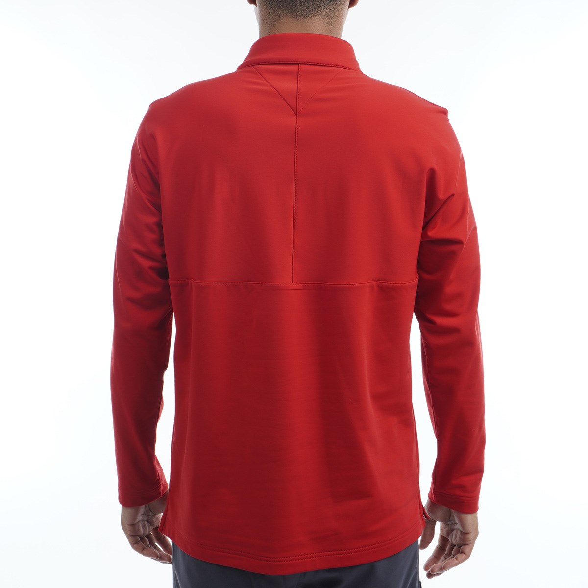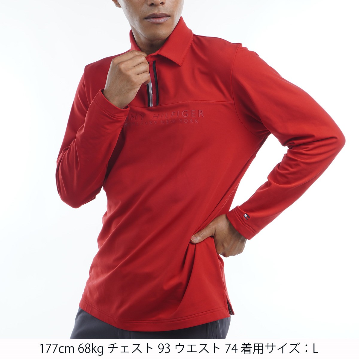 トミー ヒルフィガー ゴルフ TOMMY HILFIGER GOLF 裏起毛 フロントジップ ストレッチ 長袖ポロシャツ XL レッド 40