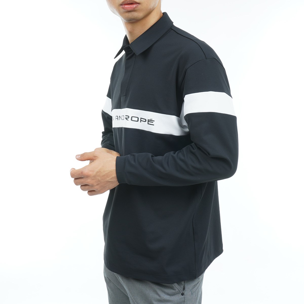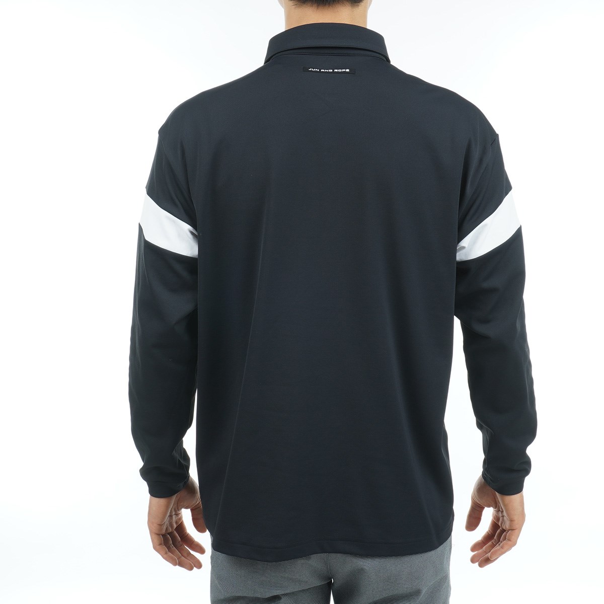 ジュン アンド ロペ JUN & ROPE UV 保温性 裏起毛ストレッチ 切替長袖ポロシャツ M ブラック/ロゴホワイト 01