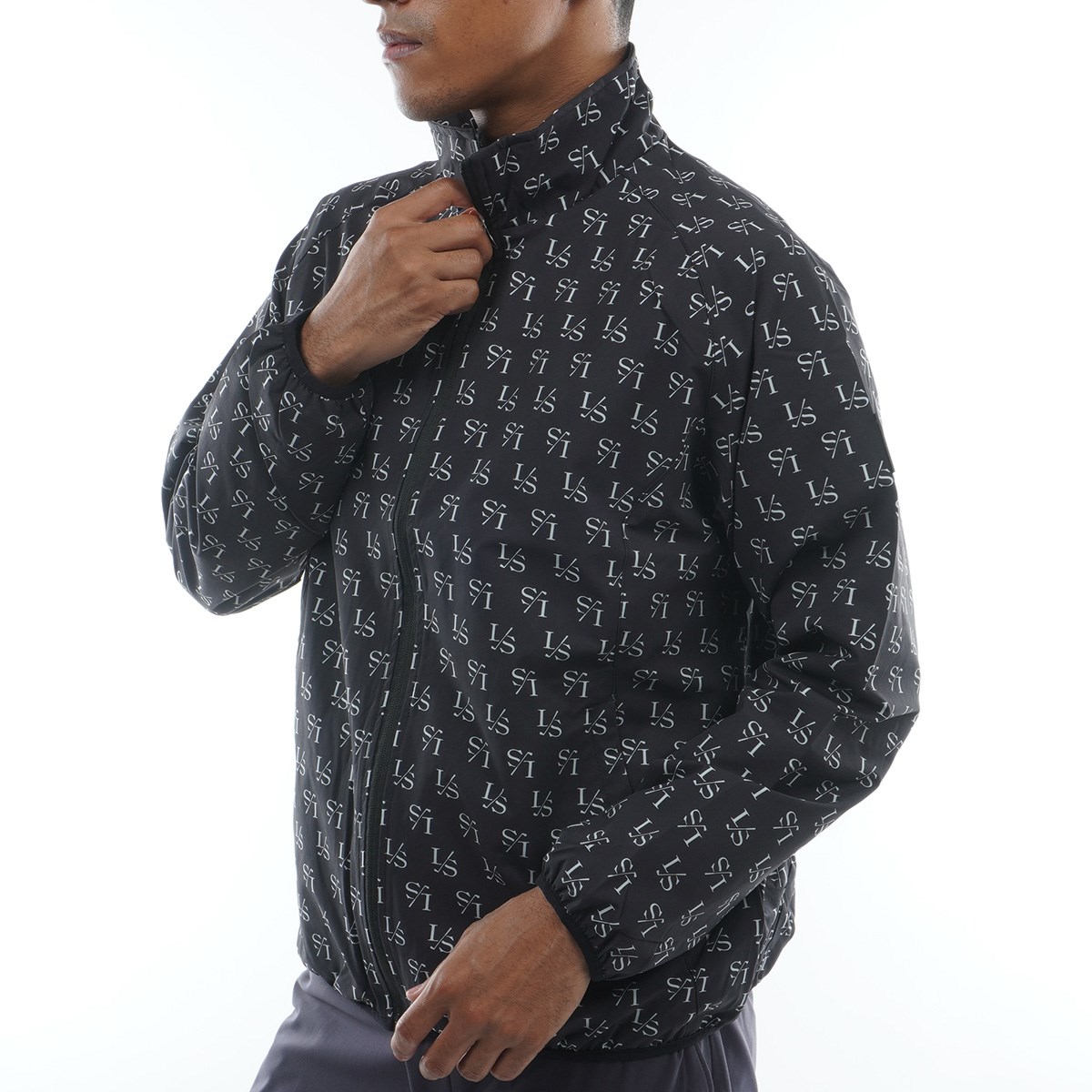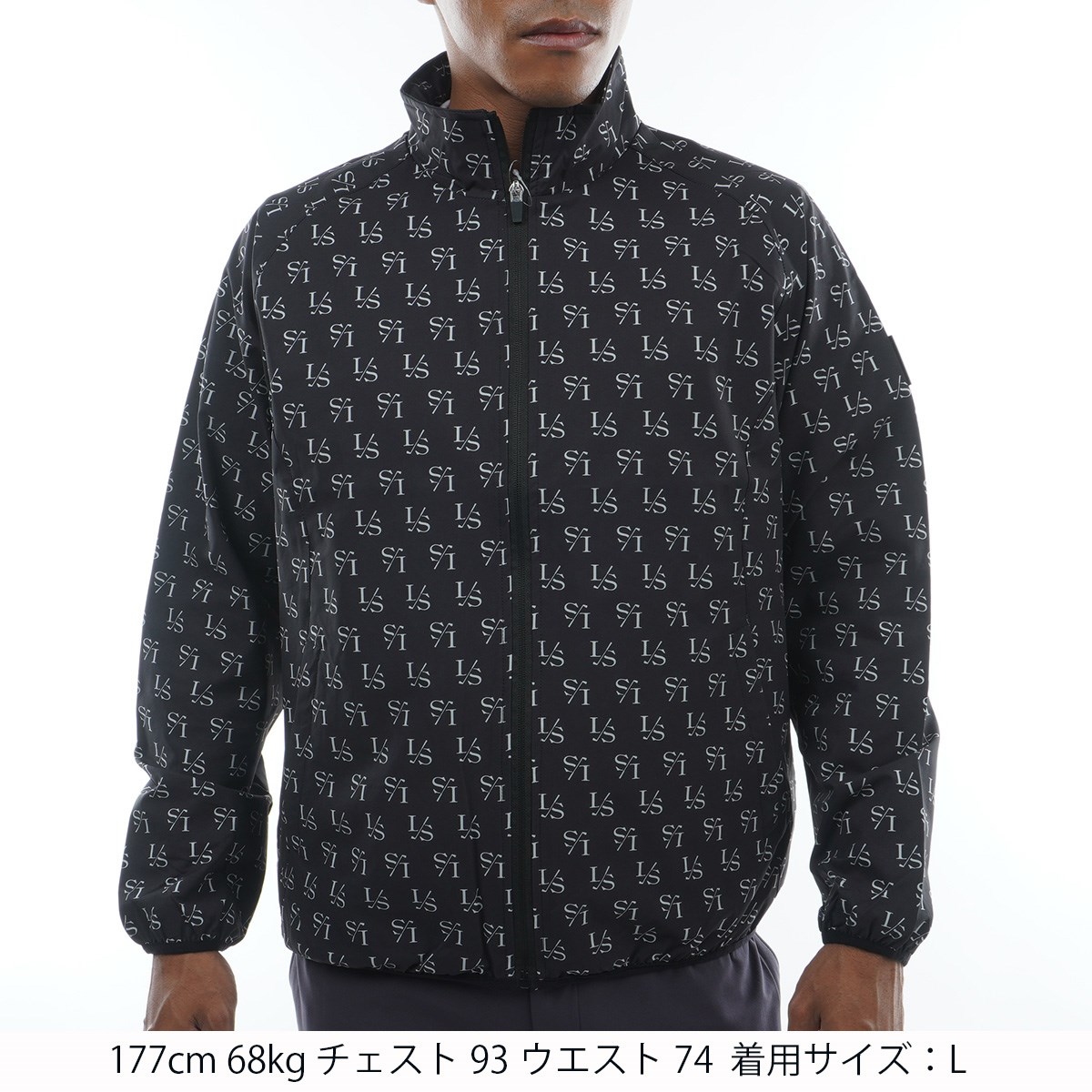 リンクススポーツのモノグラムロゴの総柄プリントのウインドブレーカー。