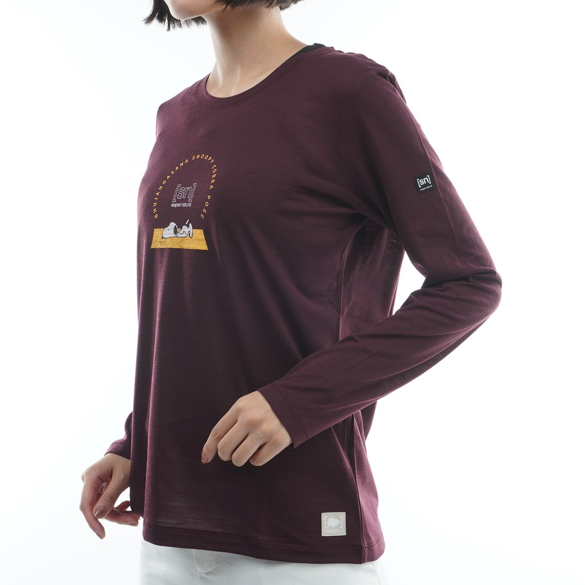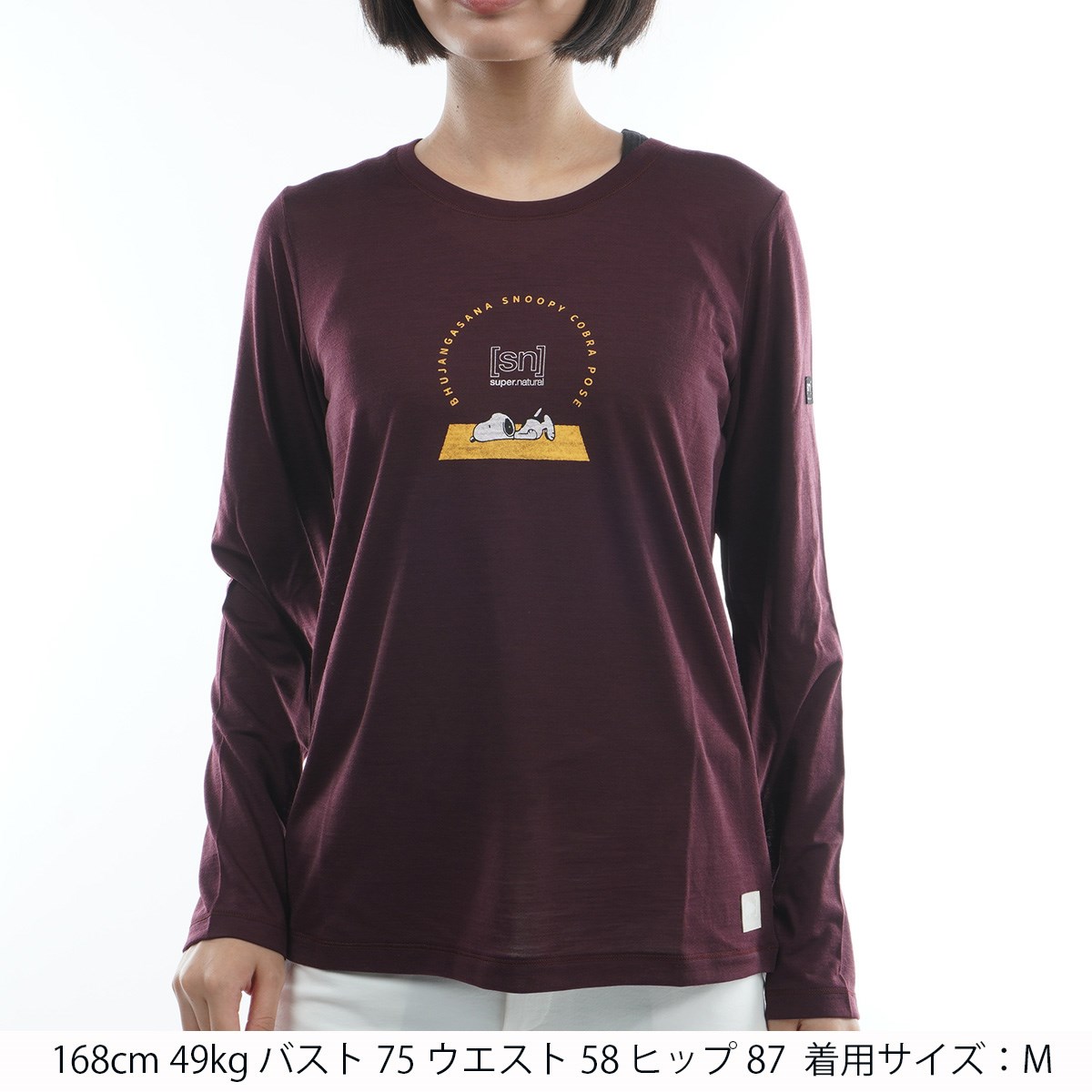 スーパーナチュラル [sn]super.natural スヌーピー コブラポーズ ロゴ長袖Tシャツ S ワインテイスティング JU64 レディス