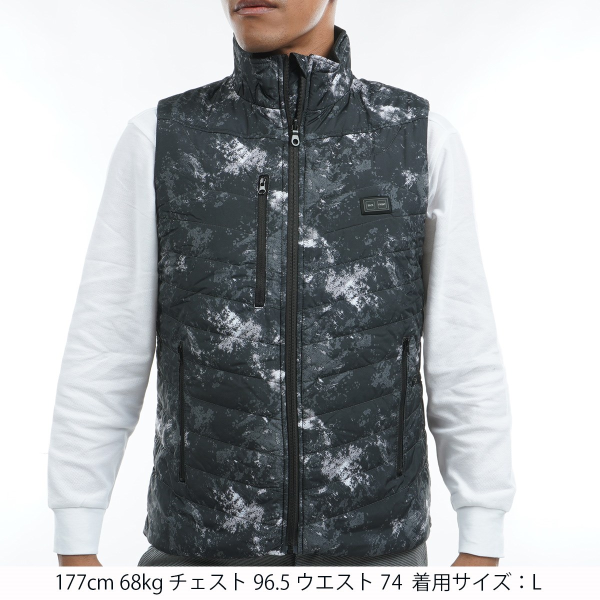 | 素材 | 表地・中綿:ポリエステル100%/裏地:ポリエステル100%(ポリウレタンラミネート加工)/加温素材:金属繊維100% |