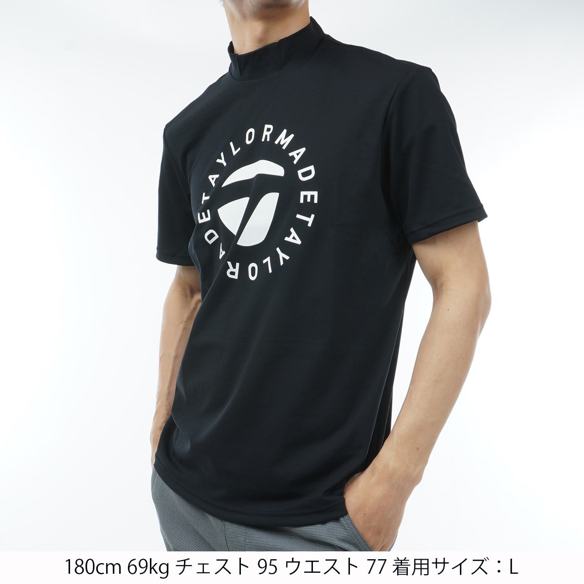 テーラーメイド Taylor Made T-ICE サークルロゴ ストレッチ モックネック半袖シャツ S ブラック