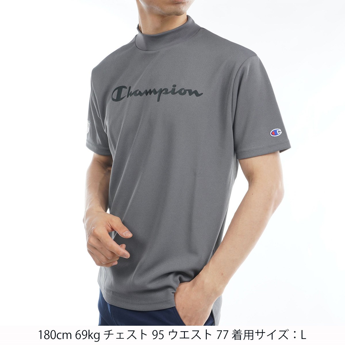 チャンピオンゴルフ Champion GOLF モックネック半袖シャツ S シルバーグレー 040