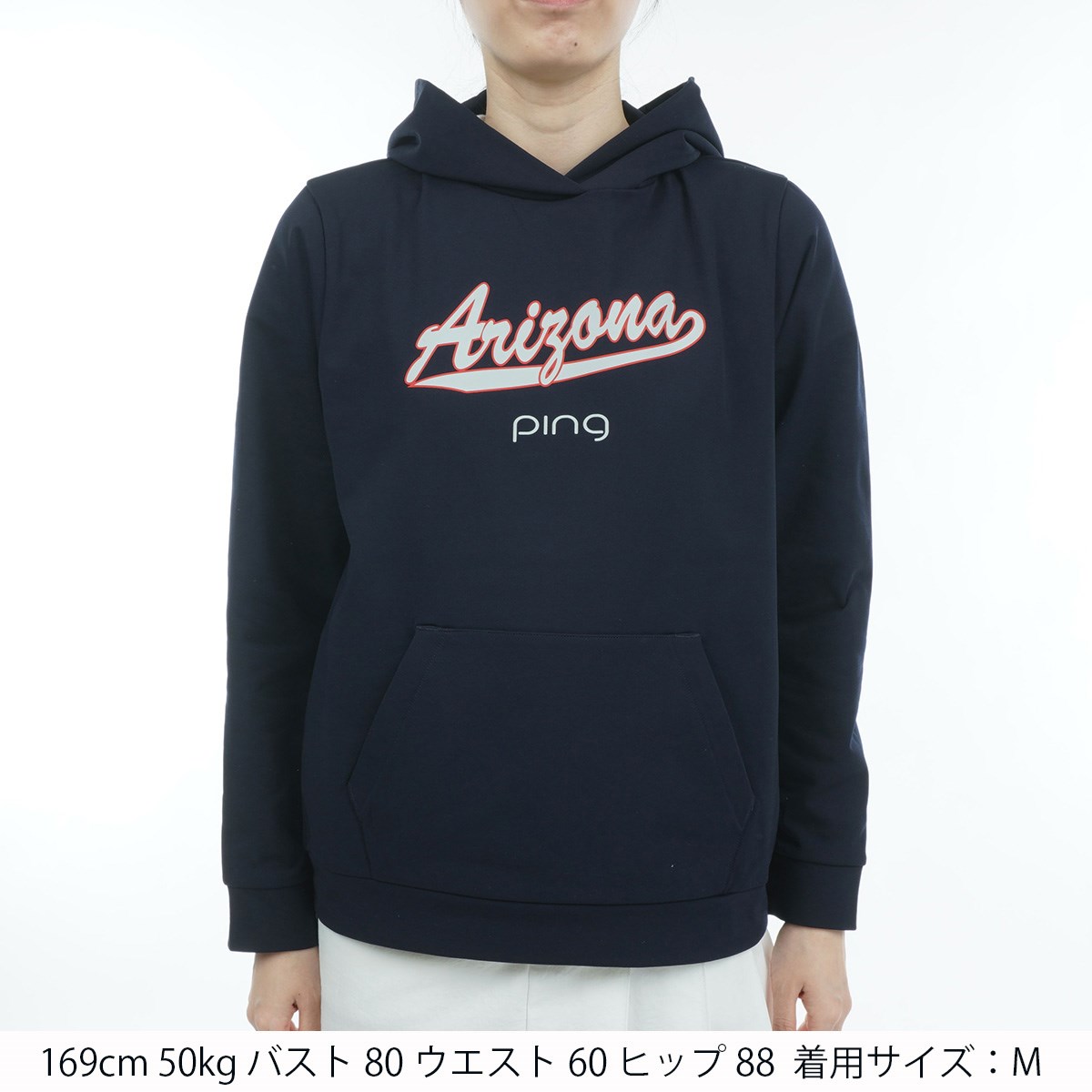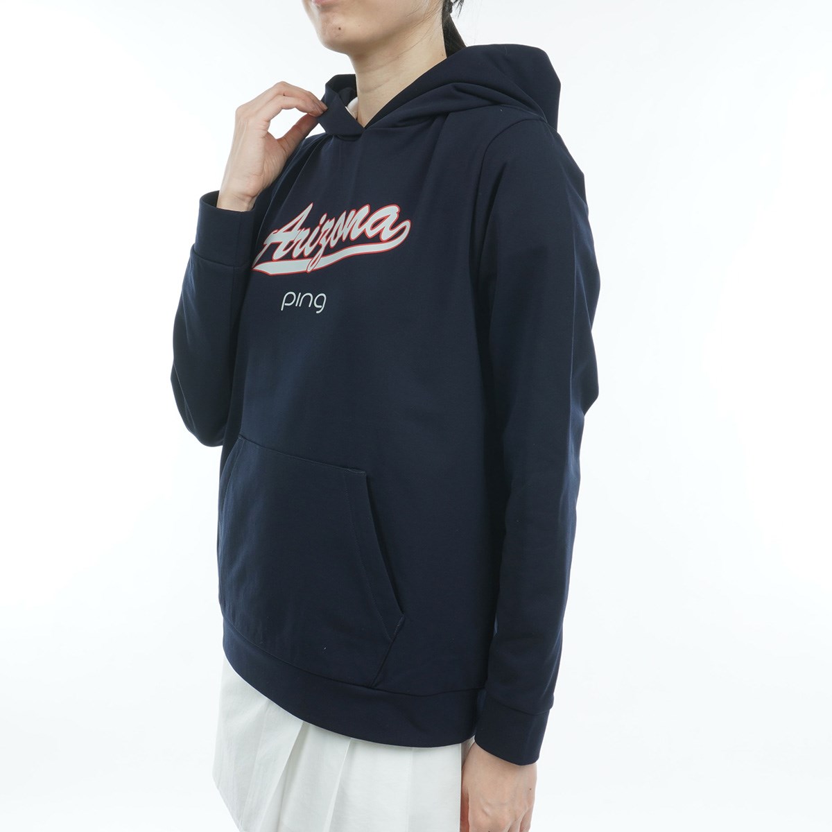 【PING APPAREL】アリゾナロゴプリント 軽量裏毛 プルオーバーフーディー <NATIVE> (LADIES)筆記体フォントで大きくあしらったフロントロゴが目を惹く、アリゾナロゴプリント裏毛プルオーバーフーディ。一日中着用してもストレスを感じにくい軽い着心地が特徴の、吸水速乾性に優れた軽量ポリエステル素材を使用。カジュアルなゴルフシーンでの着用から、デイリーまで幅広いシーンで活用可能です。SSサイズからLLサイズまでの、豊富なサイズ展開で登場です。