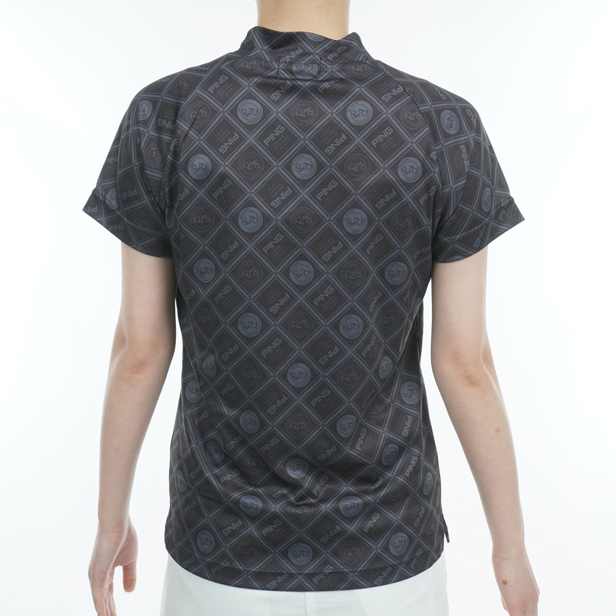 ピン PING スクエアスカーフプリント ハイネック半袖シャツ M ブラック/グレー 010 レディス