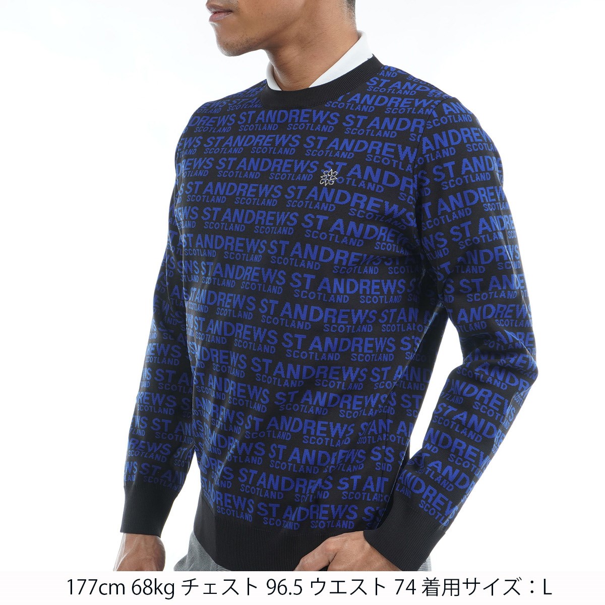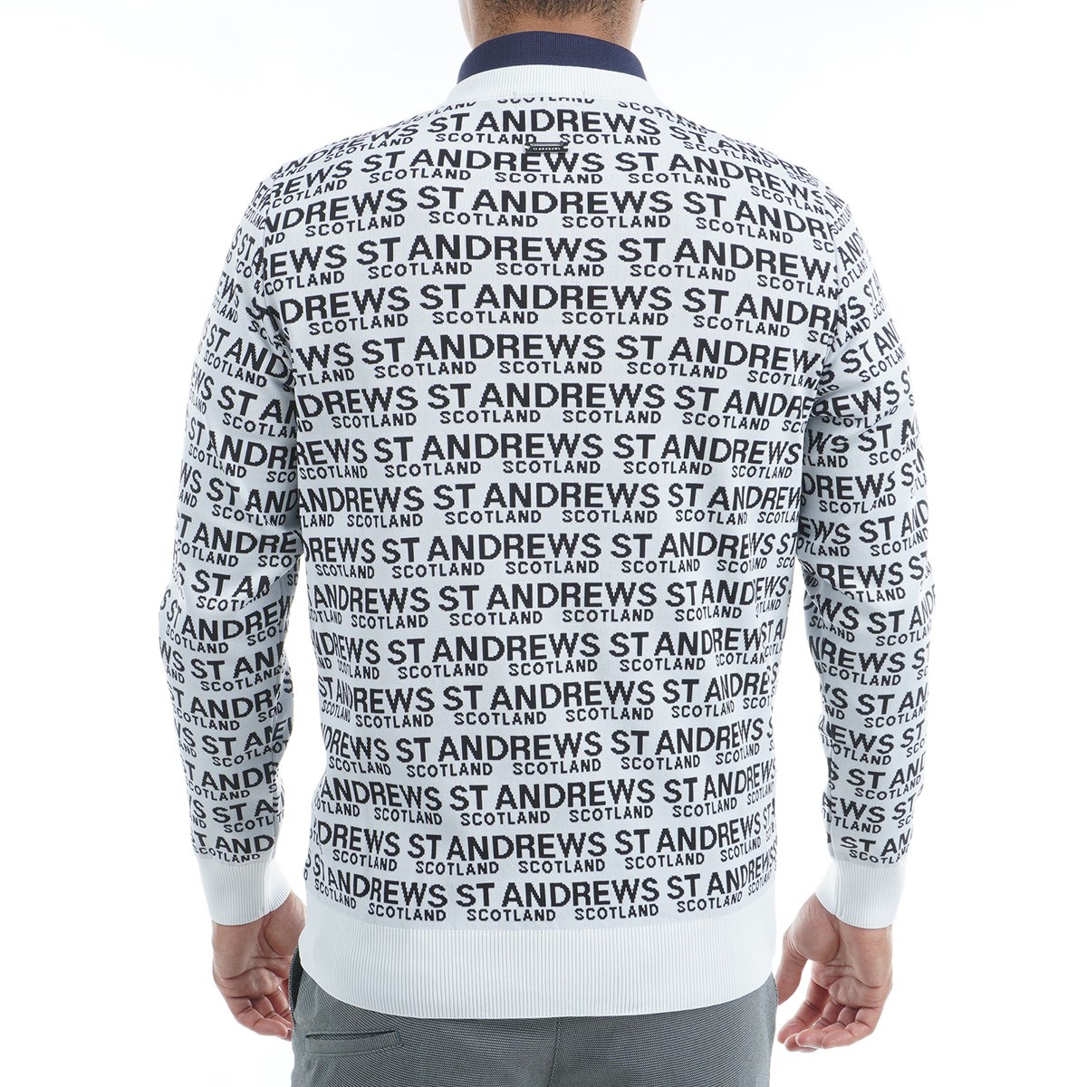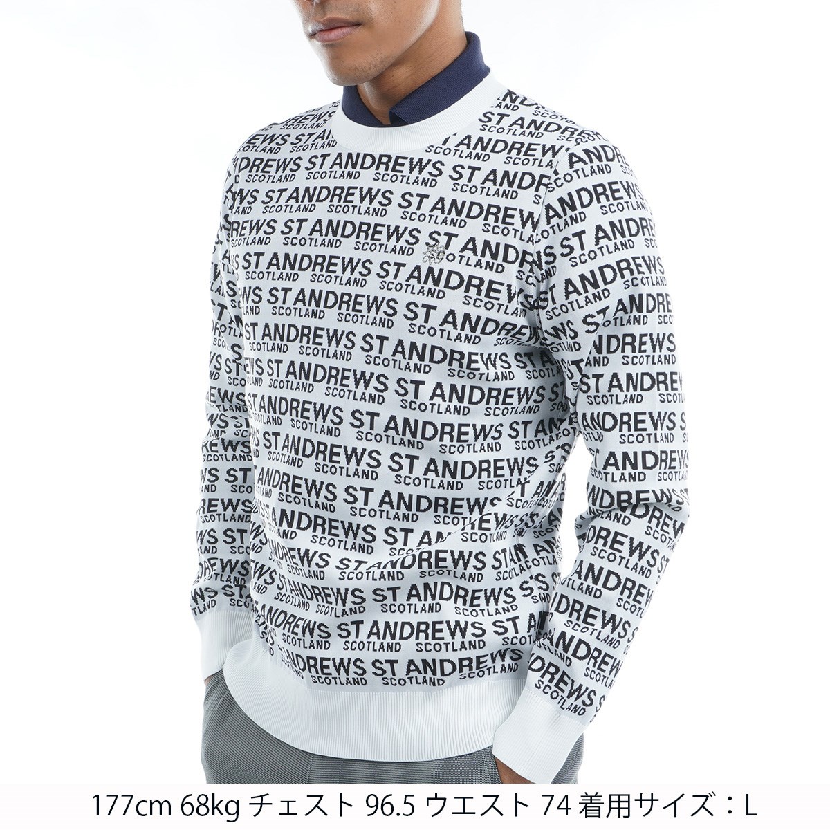 セント・アンドリュース St ANDREWS ロゴ配色ダブルジャガードプルオーバーセーター L ホワイト 030