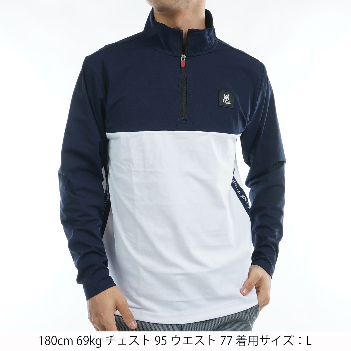 リンクススポーツ Lynx SPORTS ハーフジップトレーナー L ネイビー/ホワイト
