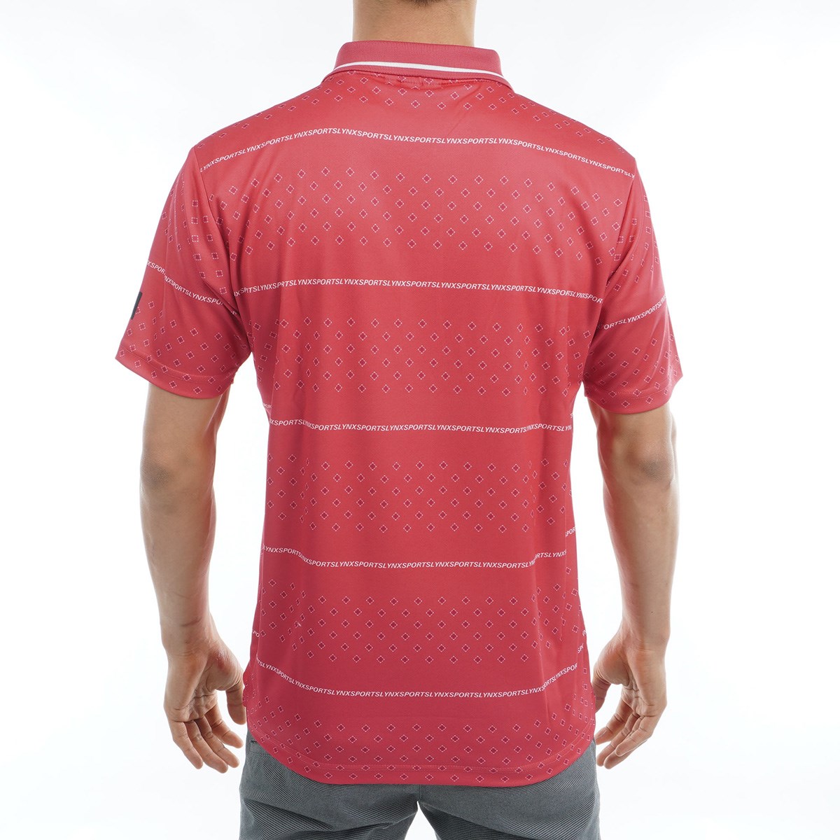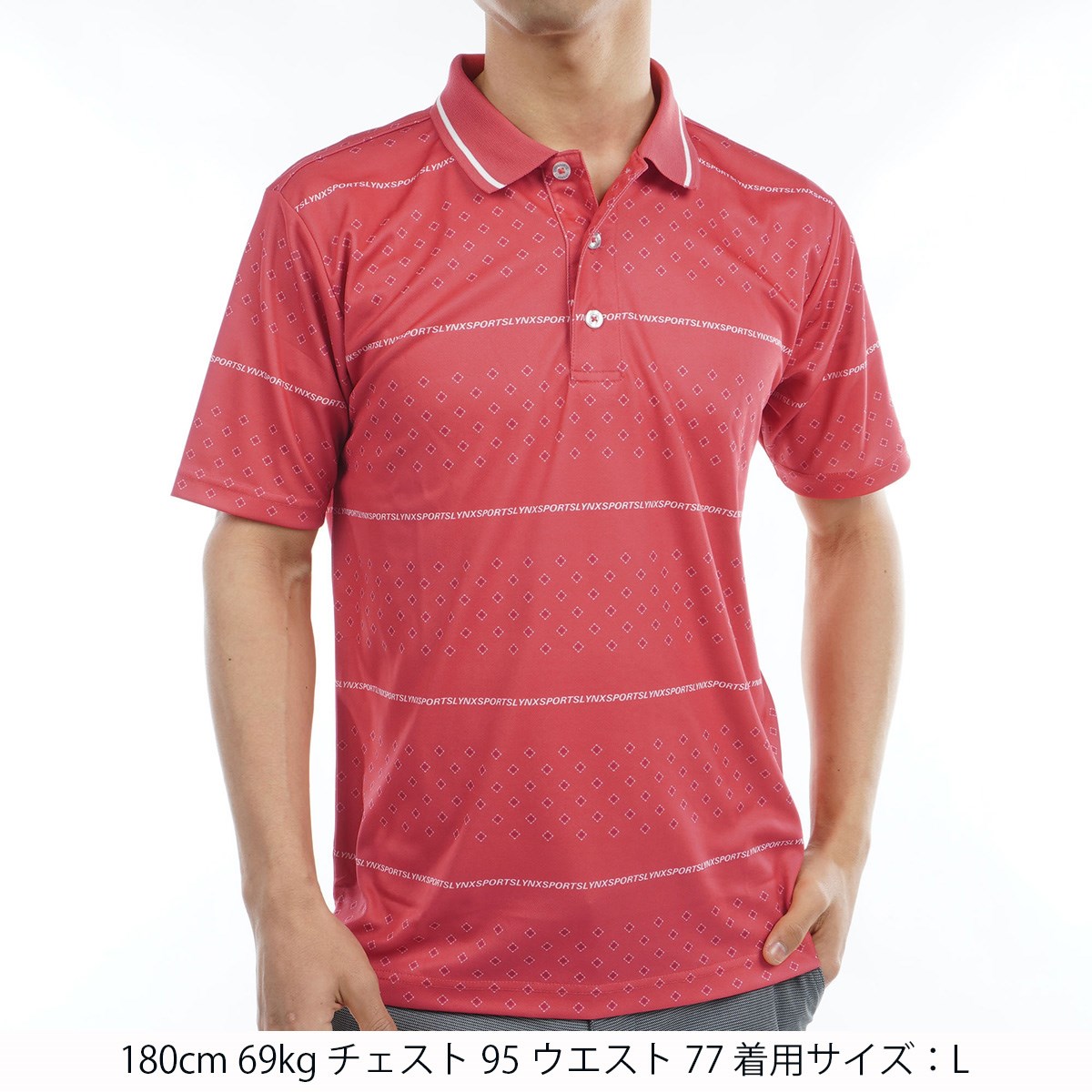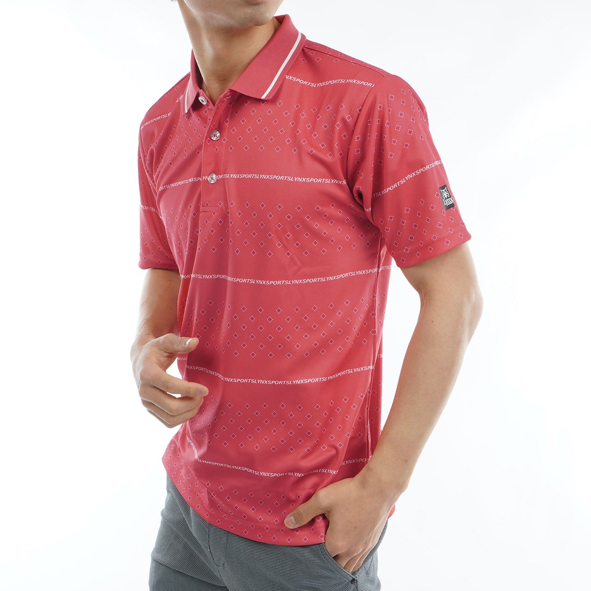 LYNX SPORTSロゴとスモールパターンが交互にボーダー見えするプリント半袖ポロシャツです。