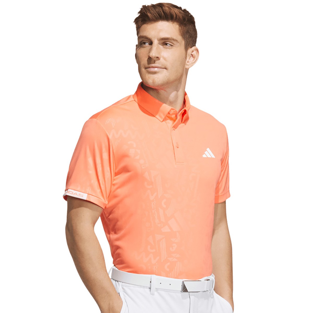 アディダス Adidas エンボスプリント ボタンダウン半袖ポロシャツ J/S コーラルフュージョン