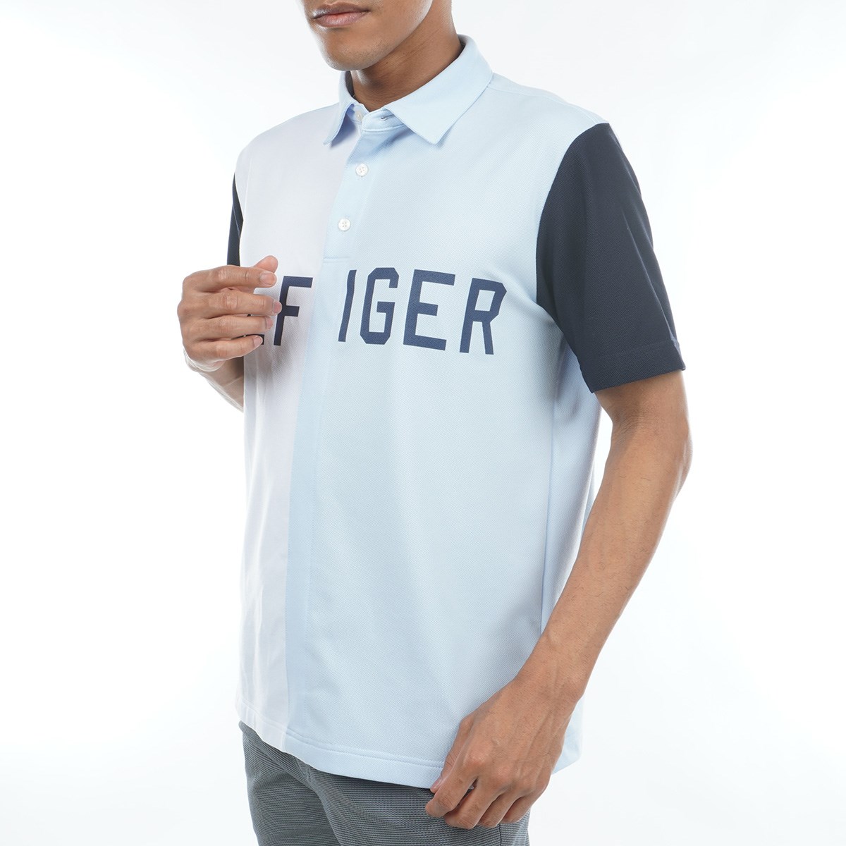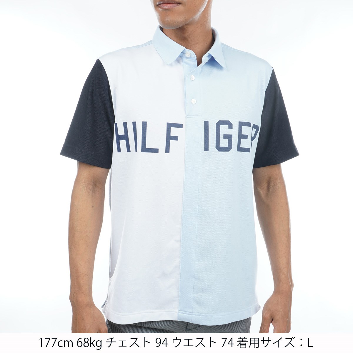 トミー ヒルフィガー ゴルフ TOMMY HILFIGER GOLF カラーブロック 台衿付き半袖ポロシャツ M サックス 39